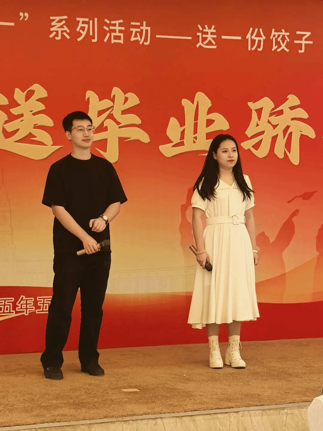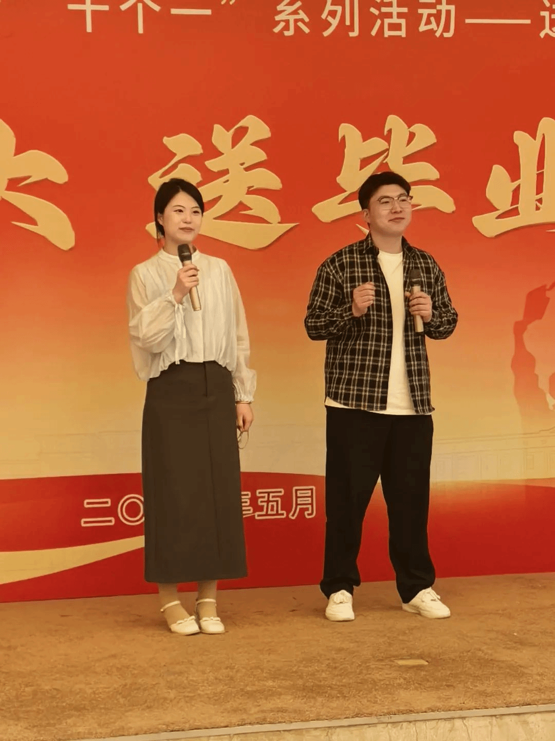 在师生同乐的热烈氛围里,毕业生代表于福波、由卓尔深情献唱一曲《再见》,用曲调勾勒出同窗岁月的美好。掌声中,毕业生代表王洪印和刘佳鹭又以一首《明天,你好》点燃了现场气氛,饱含对未来的殷切希望与青春洋溢的卓越风姿。