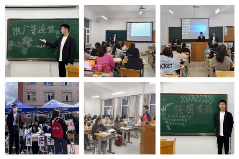 在“百年芳华”庆祝建团百年系列微团课活动中他作为领学人为同学们讲团史;在学院特色舞台剧《百年之约》中演了男主角陈斯年;作为校合唱团成员参与录制大型MV《青春之光》。在校园广播站栏目“文海天空”中担任播音员,用声音诠释古典诗词文化的魅力,讲述一件件文物国宝背后的故事,在几十场节目里留下了他传播优秀传统文化的足迹;在校园“417消防宣传”中完成播报工作;主持“校园美食节”等多场大型活动。未来,作为一名外语人,他立志以语言为舟,载文化远航,讲好中国故事,让世界听见中国声音。