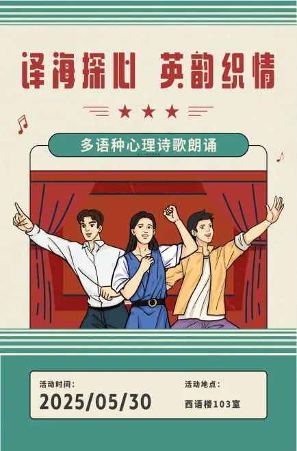 此次“译海探心,英韵织情”多语种心理诗歌朗诵会是一场在文化交流与心理健康的探索。在快节奏生活与高强度竞争压力中,同学们长期精神紧绷,焦虑、抑郁等负面情绪不断累积。在此背景下,通过朗诵心理诗歌,鼓励同学们接纳自我、释放情感,助其反思内心、正视困惑挣扎,并从中获得面对困境的勇气与力量。