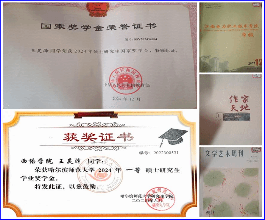 一等硕士研究生学业奖学金”,期间还荣获“硕士研究生国家奖学金”。作为第一作者,在《江西电力职业技术学院学报》等期刊上发表了共计6篇学术论文。