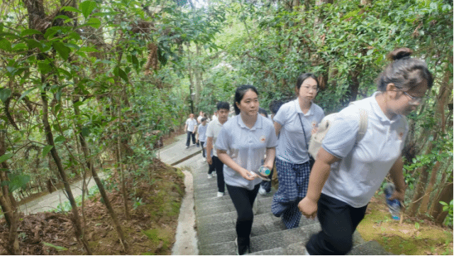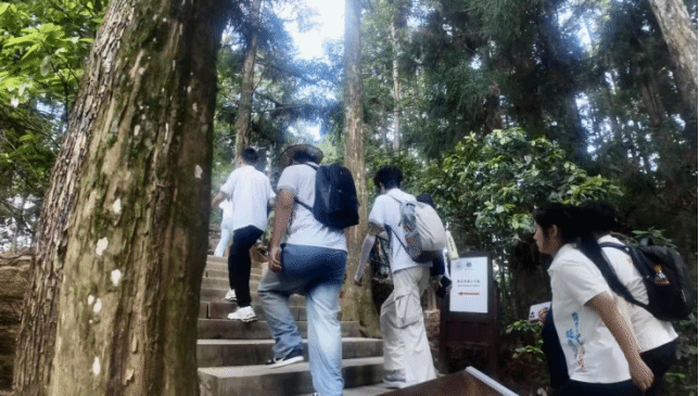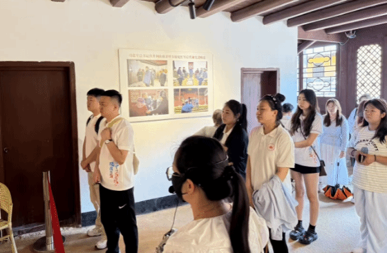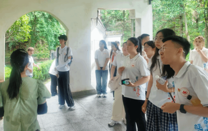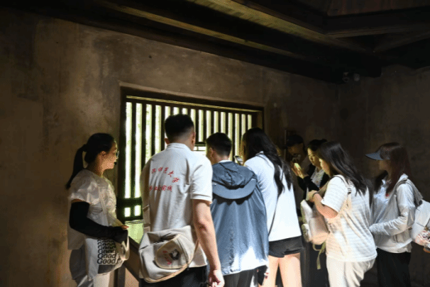 走进龙潭,在山水间见证革命烽火的自然地貌,直观感受革命先辈的斗争环境。在小井红军医院旧址,斑驳的土墙、简朴的病床无声诉说着红军伤员在极端艰苦条件下坚守信念的壮举,深刻诠释了“艰苦奋斗、勇于胜利”的精神内涵。登上黄洋界哨口,聆听“黄洋界保卫战”以少胜多的传奇,当年激烈的战斗场景仿佛重现,使“依靠群众、敢闯新路”的精神在实景中变得鲜活具体。在狭小的八角楼,面对那盏带有裂缝的油灯,成员们追忆毛泽东同志在此秉烛探索革命道路、撰写光辉著作的历程,对“实事求是、坚定信念”有了更为具象的认知。在旧址现场,团队精心组织“师生同讲一堂思政课”。教师围绕当日见闻,结合小井医院的奉献、黄洋界的斗争、八角楼的求索,将井冈山精神“坚定信念、艰苦奋斗、依靠群众、敢闯新路”等核心要义与实地场景深度融合,使抽象的精神内涵具象化、可感知,极大激发了成员的爱国热忱与传承责任。同时,学生们发挥专长,开展“用英语讲中国故事”的专业实践。他们聚焦八角楼等红色地标,深挖革命先辈播撒信仰火种的故事,精心打磨英文表达,以青春视角和国际语言生动讲述,助力红色文化跨越语言壁垒、焕发时代新彩。