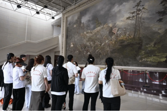 在井冈山革命博物馆,实践团成员系统参观“一号工程”主题展览。通过步枪、文献等珍贵文物及其承载的历史叙事,成员们深入了解了从三湾改编到古田会议的革命斗争脉络,在文物与史实的相互印证中精准把握井冈山精神的本真内涵。馆内专题学习会上,史料研习与思想感悟激烈碰撞,成员们立足新时代视角深入解读井冈山精神的丰富意蕴,为后续精神传播工作筑牢了坚实的思想根基。走出博物馆,“井冈红旗”雕塑迎风矗立,这座象征共和国奠基初心与使命的红色地标,在成员们的合影与驻足沉思中,进一步激发了深沉的家国情怀。博物馆的文物诉说着历史,红旗的轮廓彰显着力量,井冈山精神的红色种子已深植成员心田。