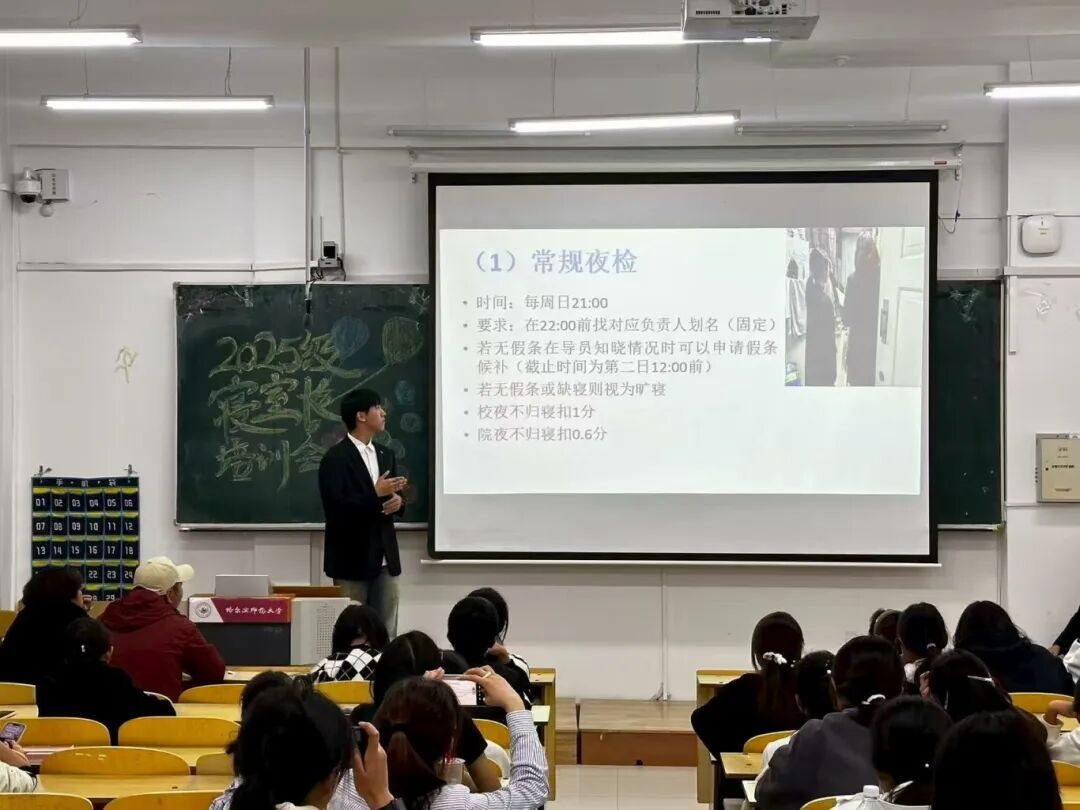 学生宿舍管理委员会于西语楼402教室召开了2025级寝室长培训会,全体2025级寝室长参加了此次会议。