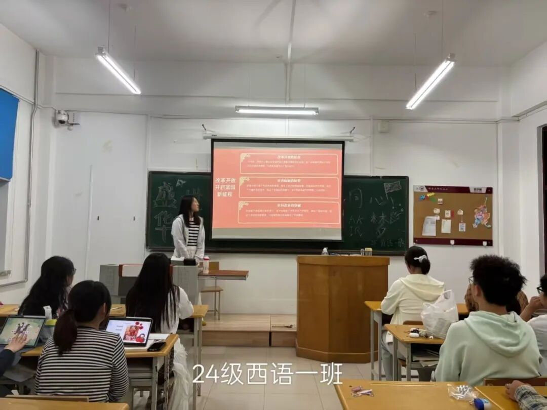 同时各班团支部围绕“新时代青年如何将个人理想融入中国梦”展开热烈讨论。同学们纷纷表示,作为西语专业学子,要以语言为舟楫,在国际交流中讲好中国发展故事,传播中国价值。