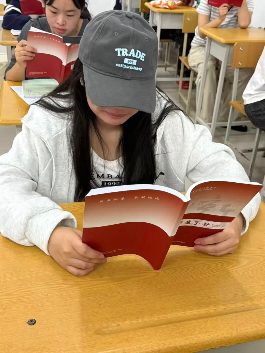 在活动前期,在辅导员老师的号召下,2025级同学认真学习学生手册内容并积极的向老师请教。为让学生手册真正“活”起来,辅导员老师通过案例结合条文的方式耐心讲解,把抽象的规则转化为贴近校园生活的实用指引,助力同学们更透彻地理解并扎实掌握手册各方面内容。