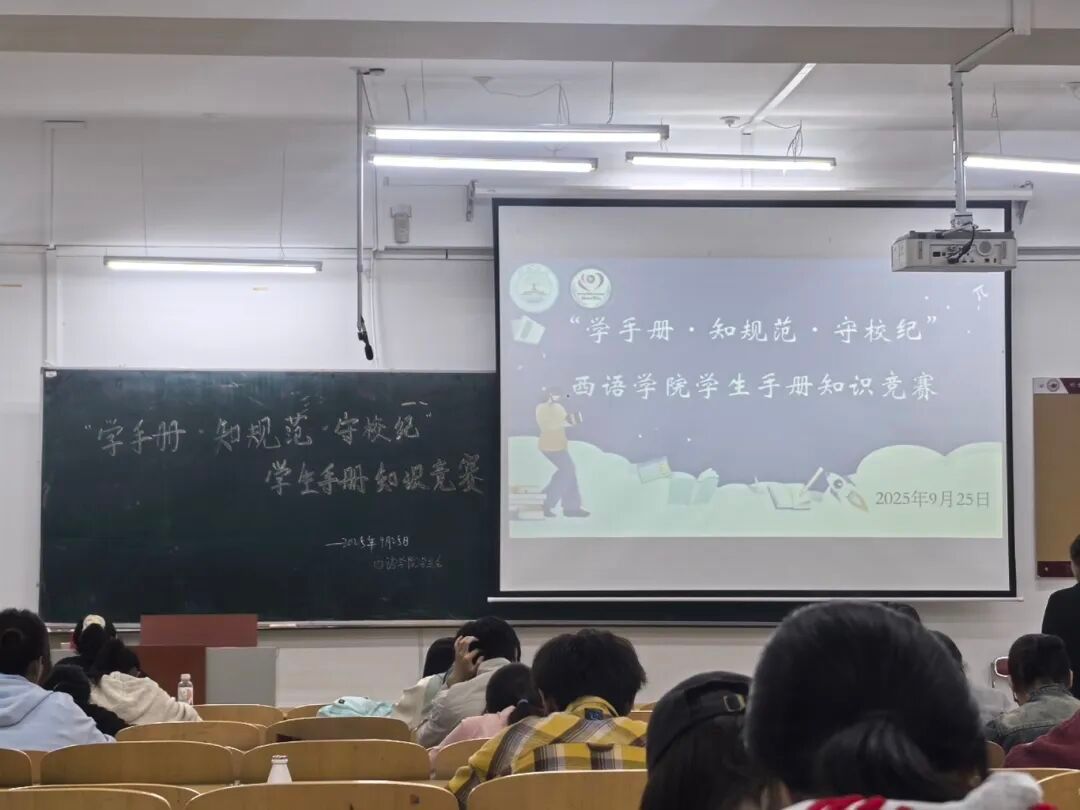 于2025年9月25日在西语楼教室451、551举办“学手册·知规范·守校纪”学生手册知识竞赛活动。