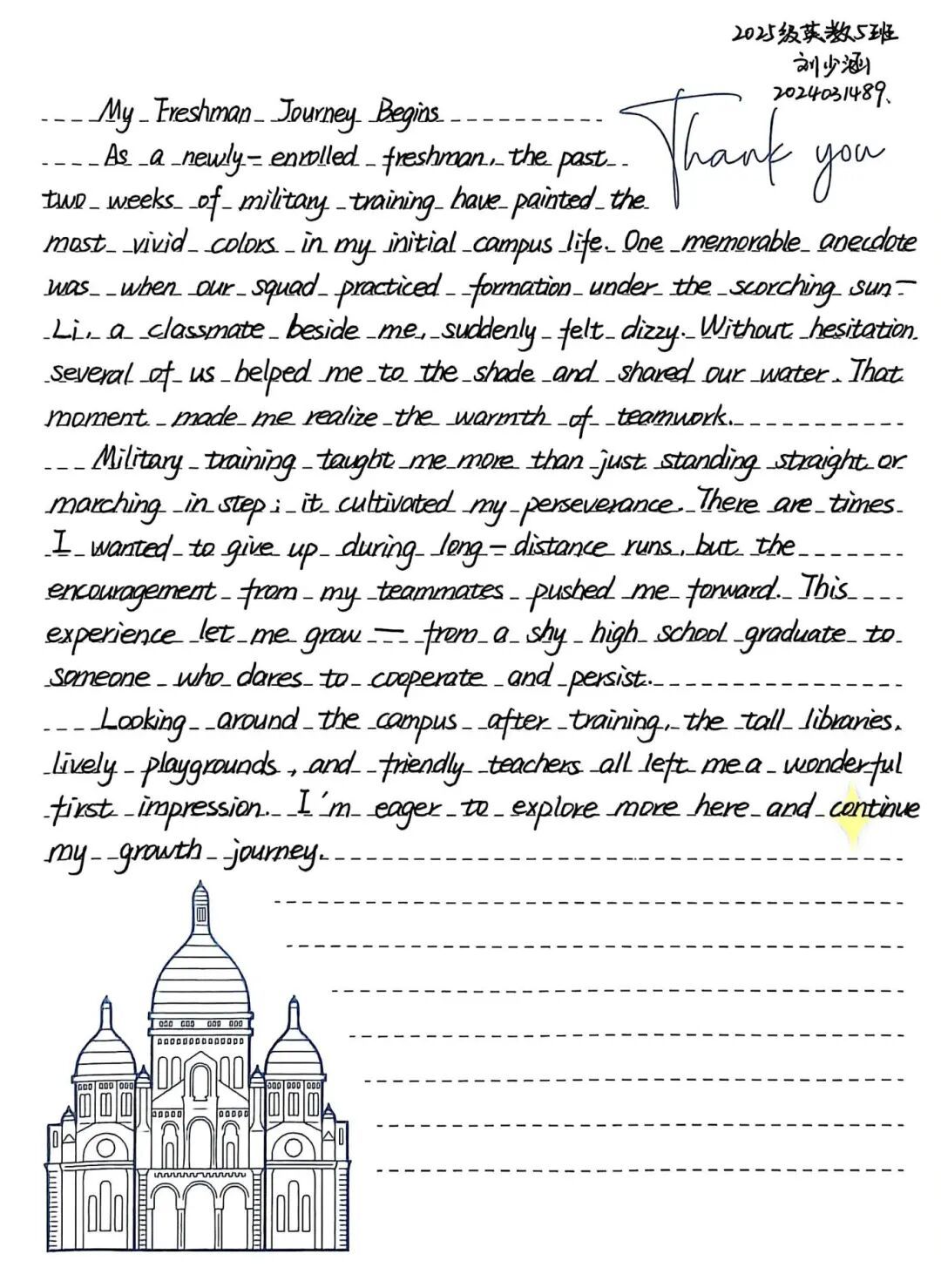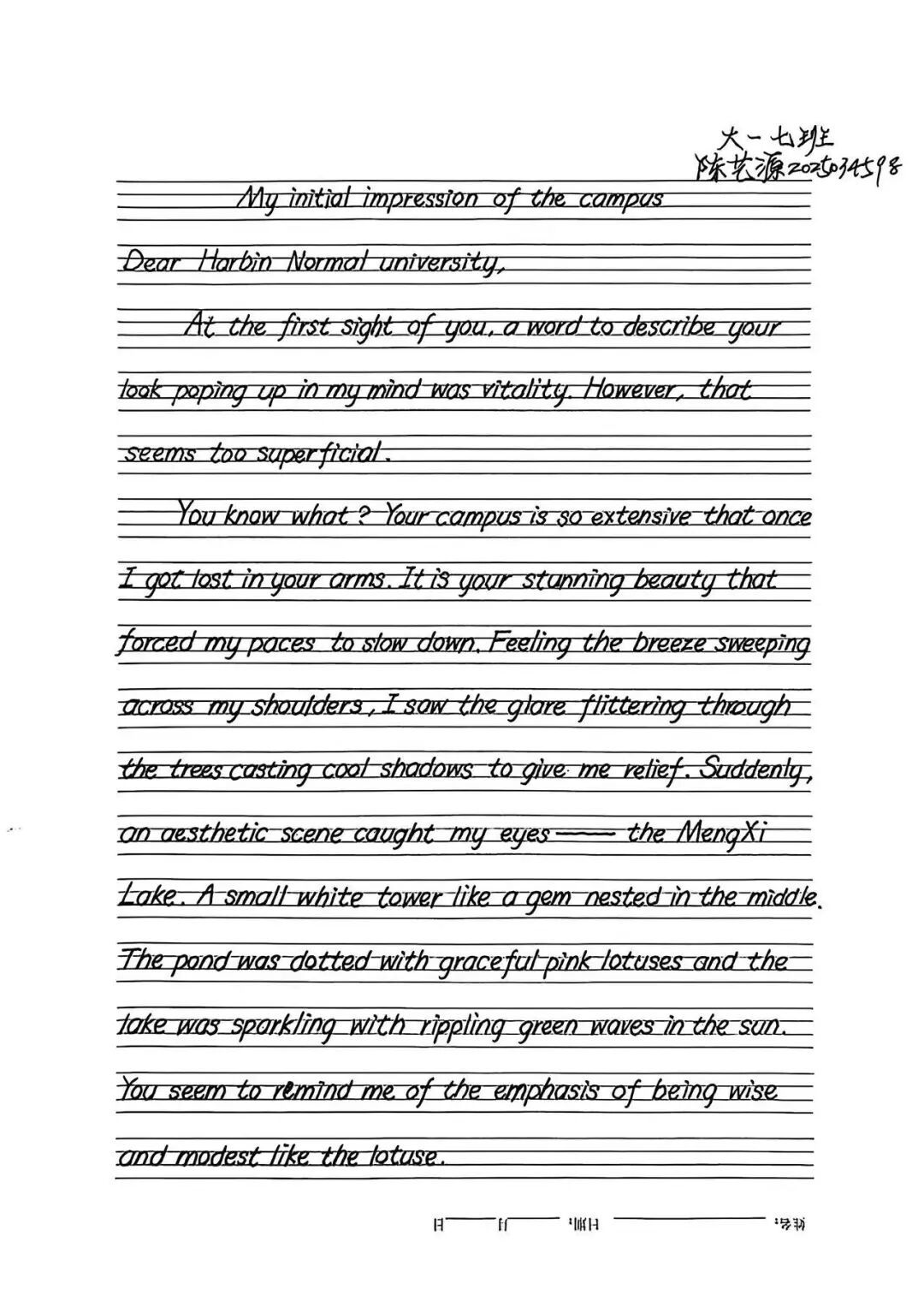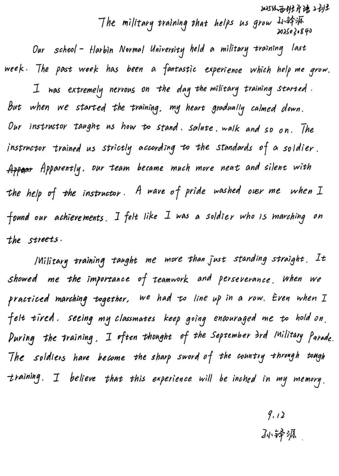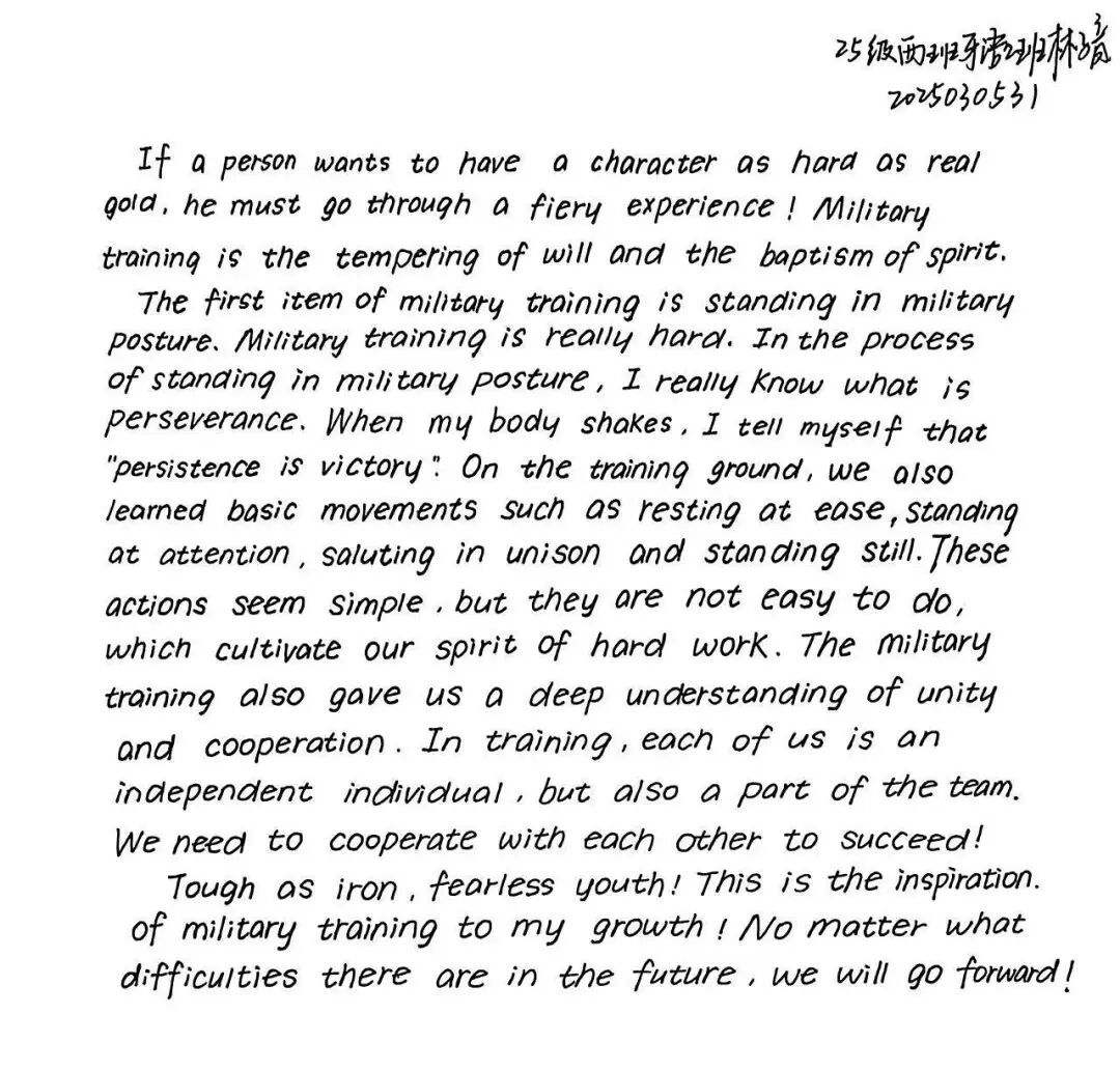 接下来让我们一同走进赛道一英文写作的精彩世界,欣赏西语学子用英文笔触描绘的军训故事与青春感悟。
