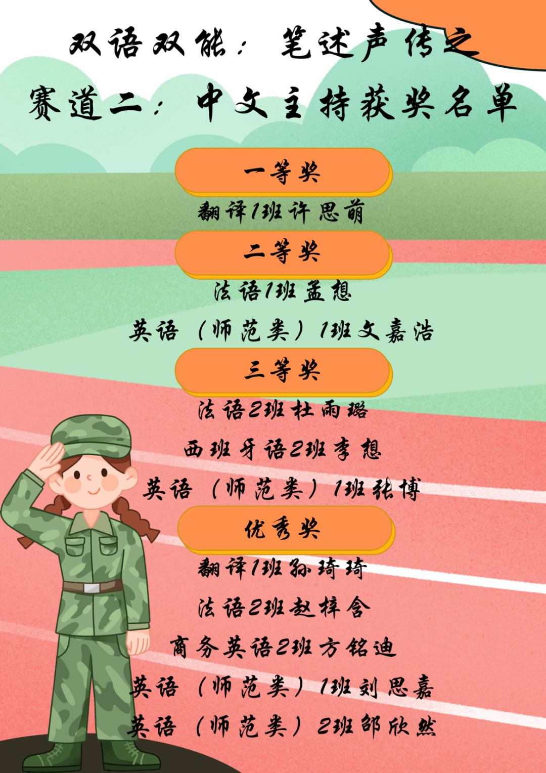 本次活动以“双语创作+多元表达”为核心,设置英文写作与中文主持两大特色赛道,旨在全方位锤炼同学们的语言运用与创意表达能力。现公布双赛道评选结果: