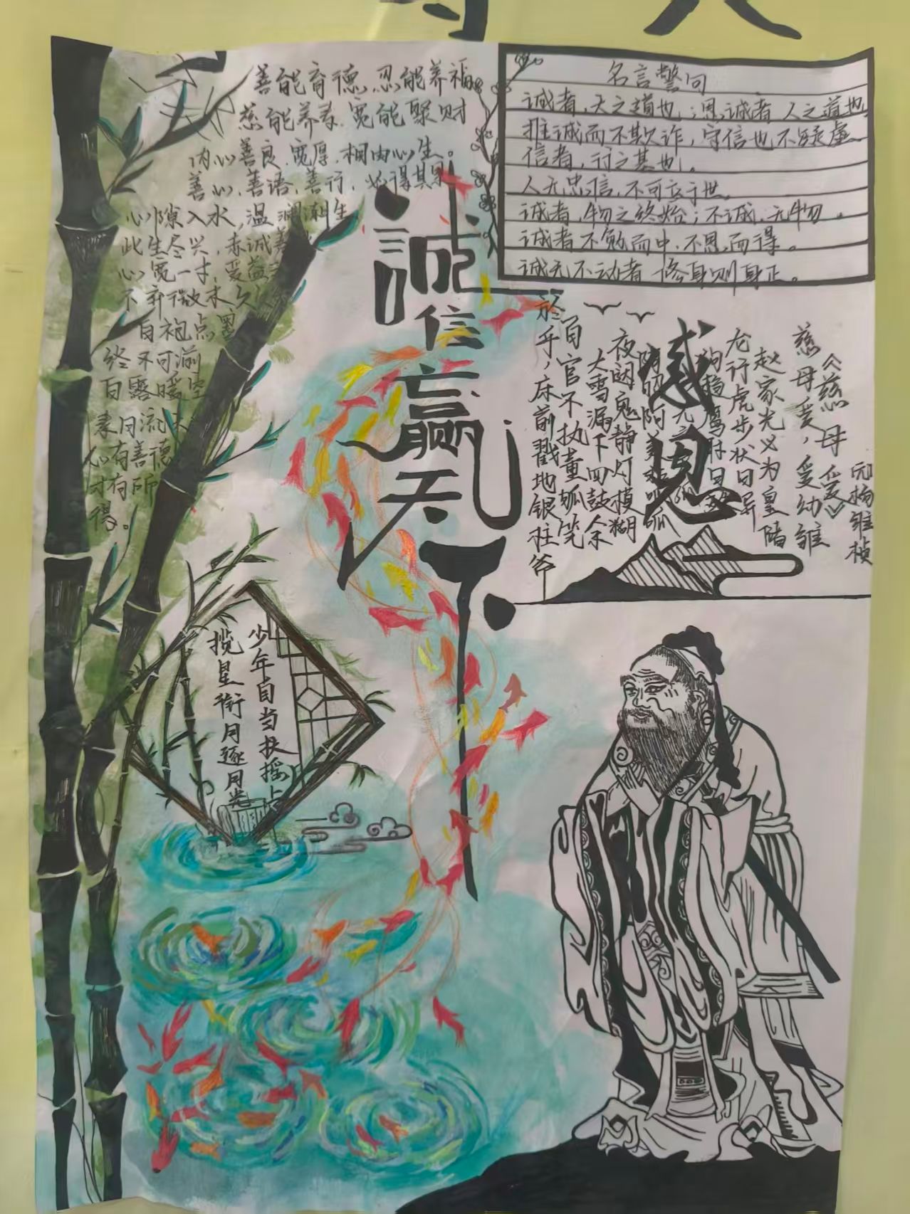 创作的过程,是一场无声的成长礼。笔尖划过纸张的沙沙声,是思绪在低语;色彩交融间的晕染,是情感在流淌。这些作品,不仅是艺术的展示,更是心灵的对话,将观者引入一个由感恩、诚信与励志共同构筑的纯净世界。