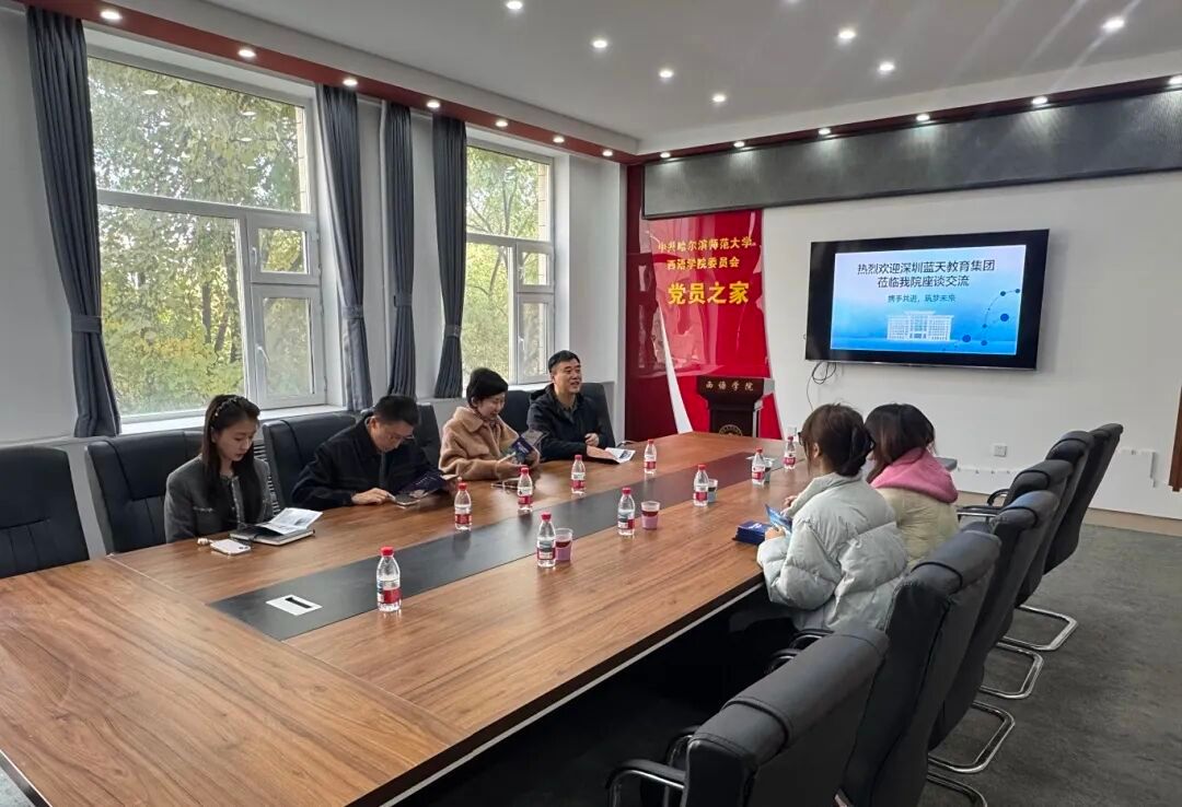 与蓝天教育集团加强合作的愿景,并表示学院将进一步优化校企合作渠道,加强供需对接,助力毕业生高质量就业。同时学院将以社会需求和学生职业发展需要为导向,进一步提升人才培养质量,增强毕业生专业素养和实践能力,加强就业教育与指导,提高毕业生与企业供需匹配度,为企业输送优质人才。
