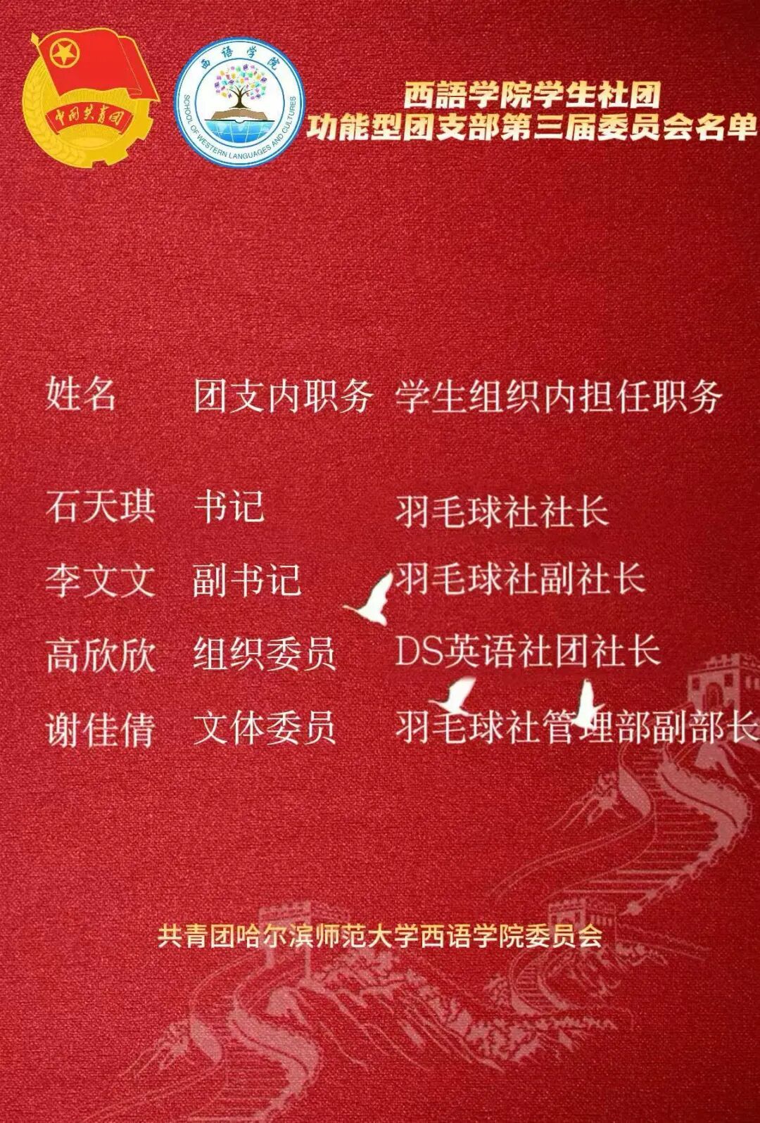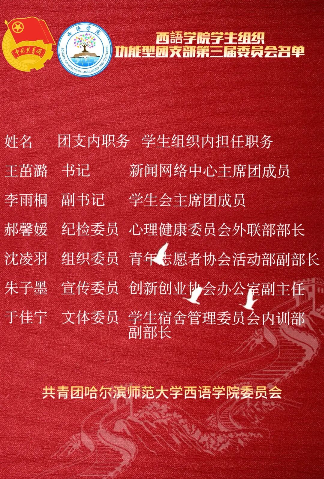 2025-2026年度学生组织、学生社团功能型团支部委员会。