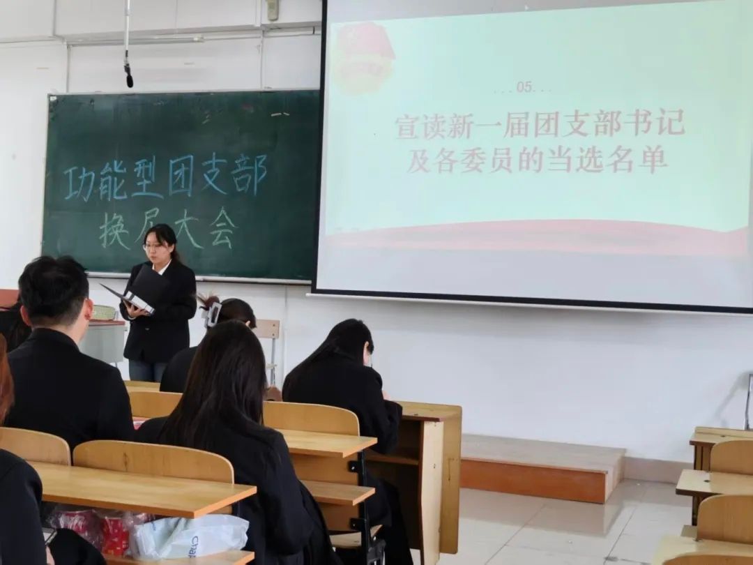 会议进行第三项,主持人吕欣泽同学宣读新一届团支部书记及委员当选名单,并宣布新一届团支部委员会成立。
