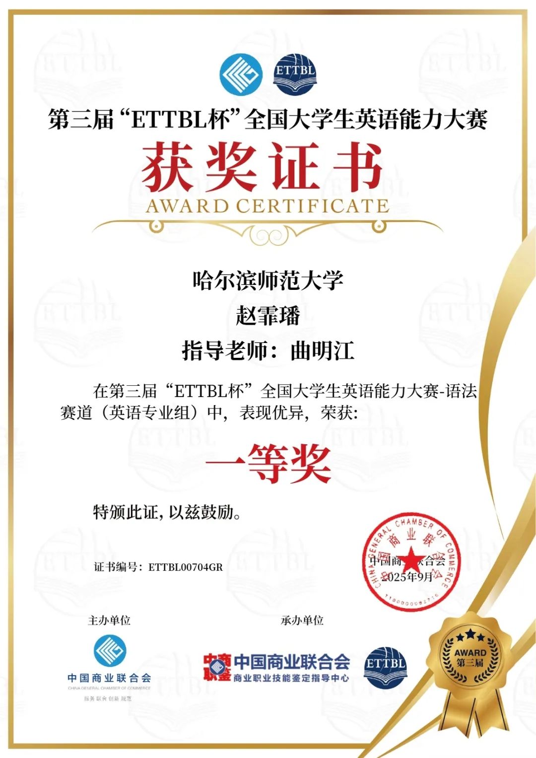 为促进大学生英语学习交流,提高大学生英语学习水平,为全国大学生提供一个展示语言能力和综合素养的舞台,促进学生在实际应用中提升英语表达和沟通能力,中国商业联合会特举办第三届“ETTBL杯”全国大学生英语语法大赛。