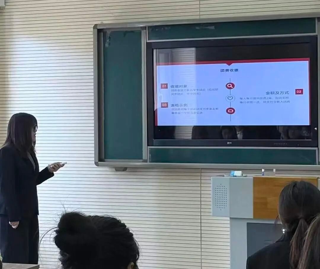 办公室主任陈可瑜向参会人员重点强调团费收缴工作,明确指出收缴对象、金额以及方式,统一团费收缴登记表的格式,向各团支书指明此举对加强团组织自身建设、保障团内活动顺利开展至关重要。