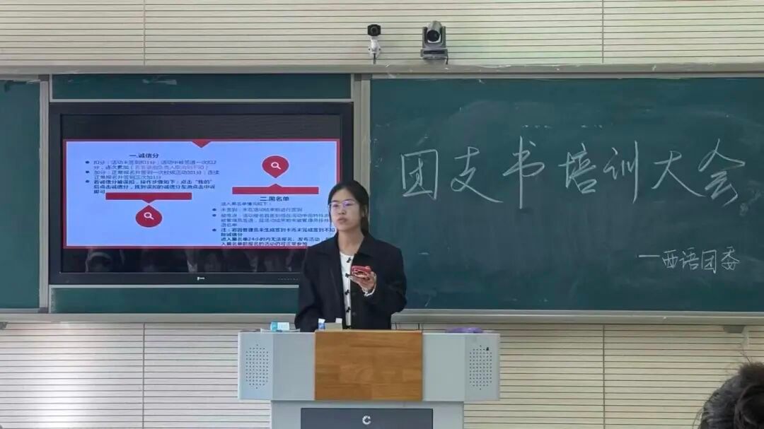 团务管理与策划中心主任吕欣泽为大家详细介绍如何开展团课、团活,以及团支部手册的检查标准,并指出团课与团活是团员思想教育的重要载体,对团组织建设具有重要意义,希望各团支书充分准备、创新形式,真正发挥其教育青年的作用。