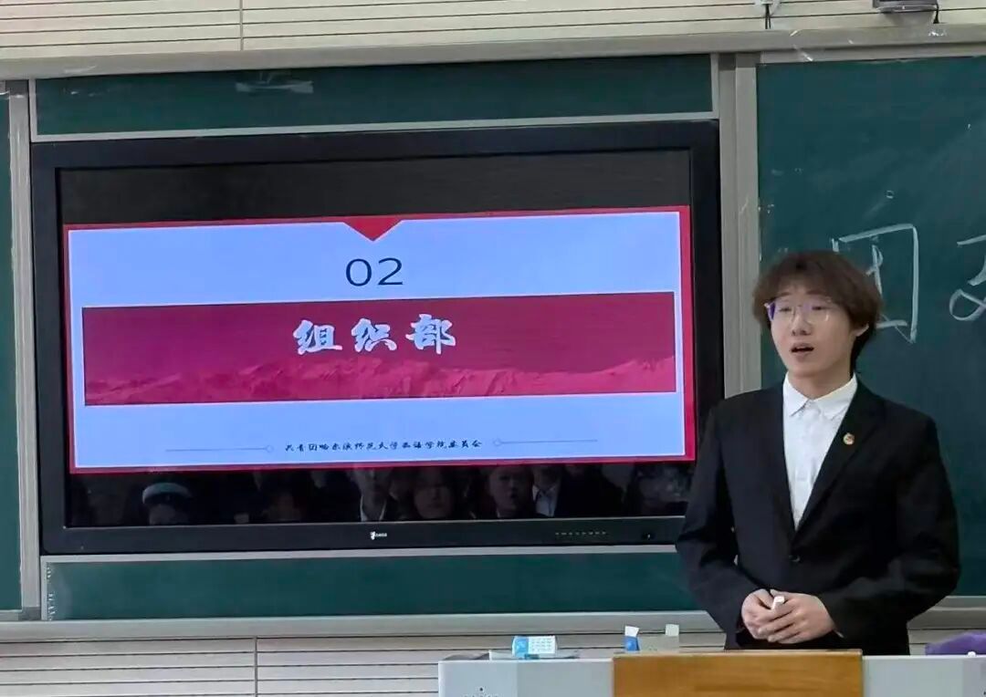 组织部部长王起博则向大家讲解了智慧团建的操作方法以及团员的发展与管理,强调其严肃性与重要性,要求团务工作做到规范和严谨,清晰阐明了其与团支部工作顺利展开的关系。