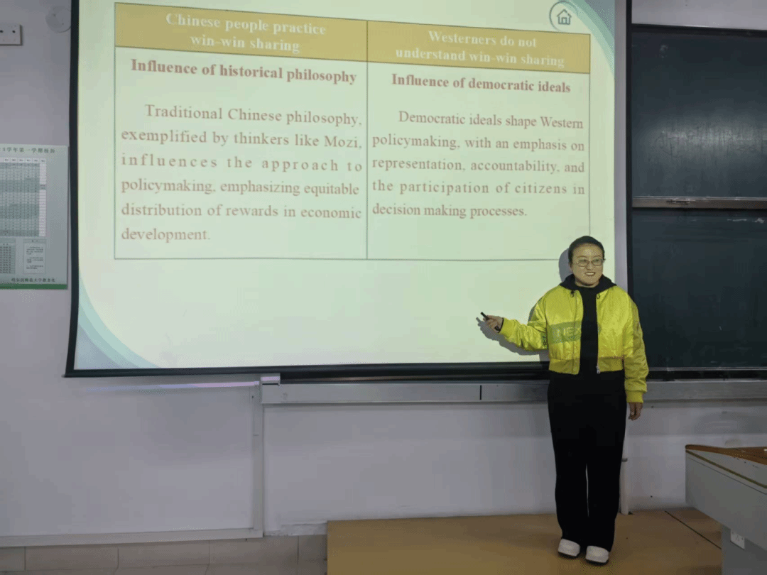 10月20日,研究生英语系主任陈杰面向2025级传媒学院广播电视专业大一新生,就《新视野大学英语第一册》第二单元“Loving parents, loving children”中的课文进行了教学展示。陈杰聚焦“爱与成长”,探索了大学英语课程思政新路径。引导学生深入文本细节,将学生的个人体验(作为刚刚离家的大学生)与课文主题连接起来,自然引出了感恩父母、理解代际差异、以及个人成长与家庭纽带关系等核心思政议题。紧密结合广播电视专业属性,引导学生在应用英语的同时,深度挖掘文本的情感价值与社会意义,实现了从“学英语”到“用英语思考与表达”的升华,使得课程内容超越了单一的英语技能训练,上升到文化认同与价值塑造的高度。
