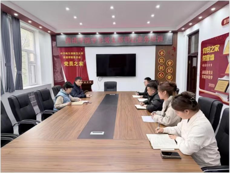于10月29日上午在西语楼204室开展学生党支部书记业务培训,学院党委书记李晓航、党委副书记吕会庆、全体学生党支部书记参加培训,会议由李晓航主持。