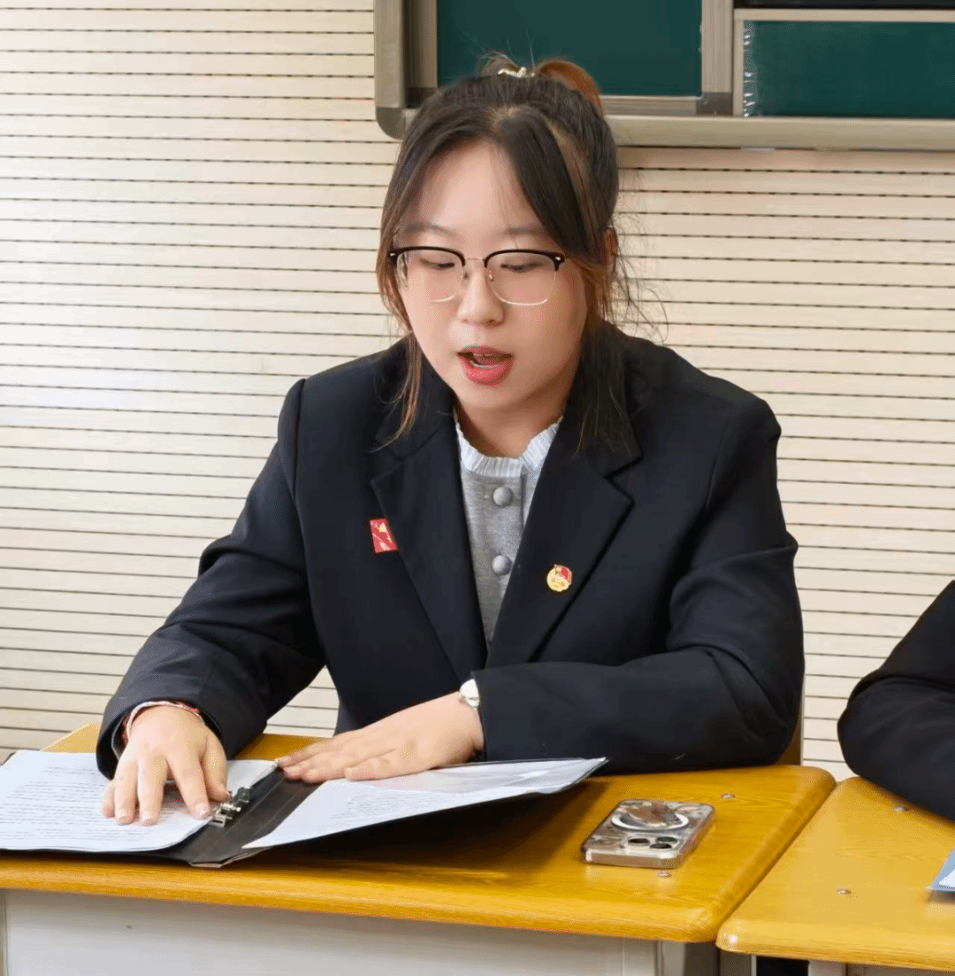 宣讲团副团长苗程程表示,担任新一届副团长既荣幸又深感责任重大,向宣讲团及付出心血的前辈致以敬意。同时,她也对成员提出三点期望。她号召成员并肩奋斗,以青春热情传递理论,以实际行动践行理论,让理论声音在校园回响、青春理想在奋斗中闪光。