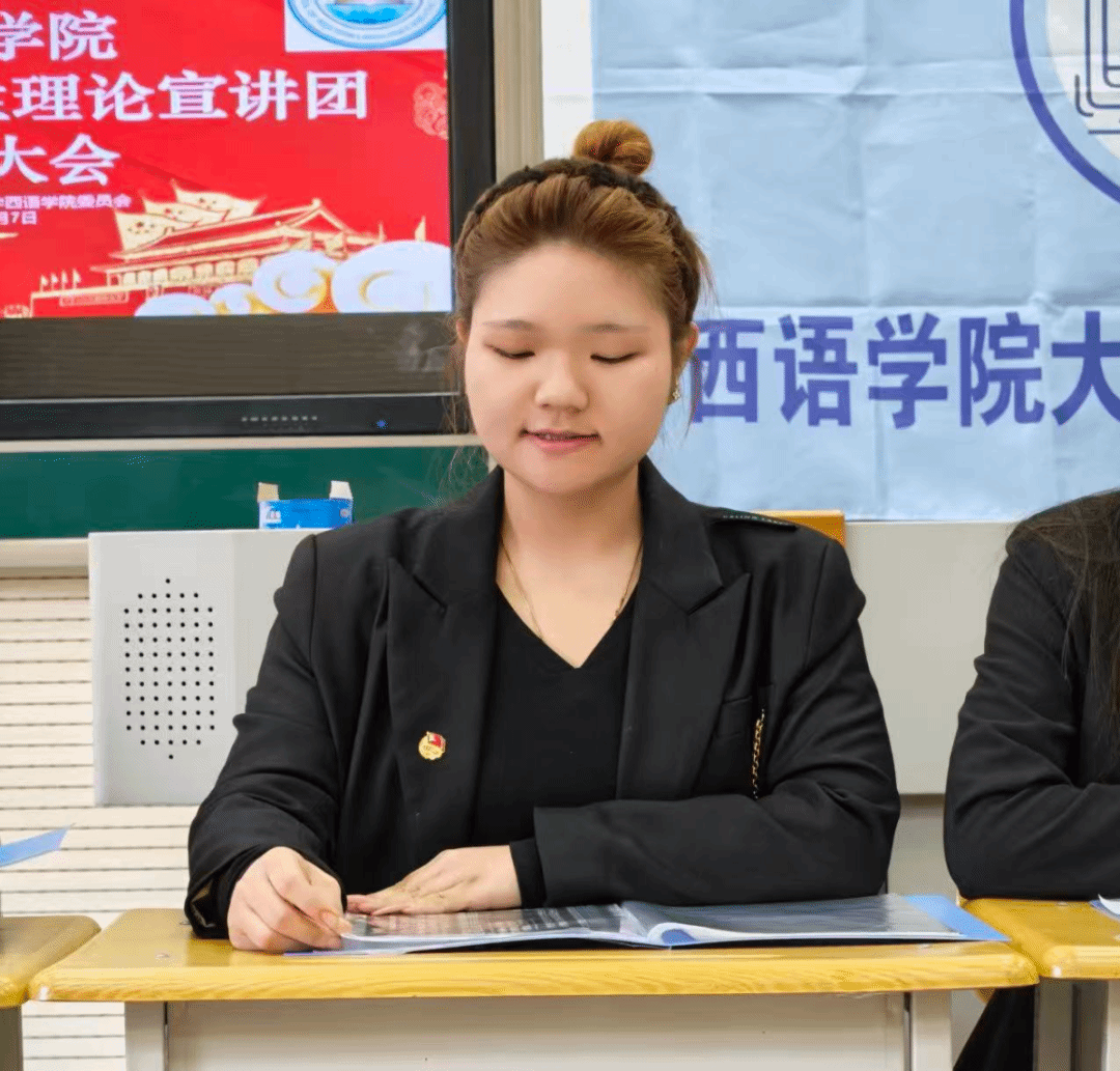 第三届大学生理论宣讲团成立。团委学生兼职副书记苏鑫蕊提出宣讲团将围绕"让理论活起来、让青年听得进"这一核心,在内容、形式和阵地上多维创新,用鲜活案例解读理论,融合线上线下模式,构建校地联动矩阵,并通过完善培养机制打造过硬队伍,让理论之音传得更远。团委学生兼职副书记计美佳欢迎了新成员的加入,强调宣讲团是思想宣传的重要阵地,要求大家深入学习习近平新时代中国特色社会主义思想,并鼓励西语学子结合专业优势,让理论宣讲既有深度又有特色。