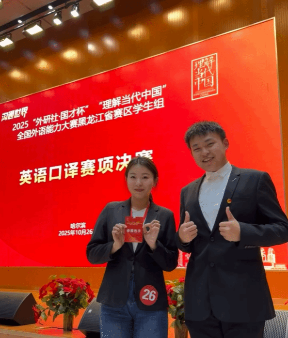 “外研社·国才杯”系列赛事是中共黑龙江省委宣传部、黑龙江省教育厅、外研社共同主办,该赛事覆盖全国超千所院校,因其专业性、权威性和高含金量,成为检验学生外语综合素养的重要平台,也是高校选拔外语人才的重要参考依据。备赛期间,我院参赛同学在指导教师的悉心指导下,制定了科学系统的训练计划,从海量素材积累到模拟赛场实战,从语言表达打磨到临场心态调整,参赛同学始终以严谨认真的态度投入每一次训练,不断突破自我、精进技能。