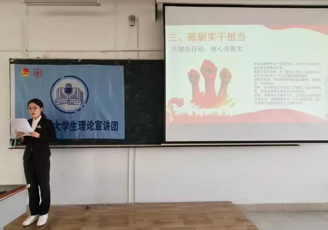 范荣婷立足“十四五”收官、“十五五”谋划的关键节点,阐明会议凝聚发展合力的战略意义;拆解《“十五五”规划建议》蓝图与“六个坚持”核心要义;以“功成必定有我”的担当将精神转化为实干。引导学子跳出书本看时代,把学业追求与国家发展同频,以青春锐气攻坚克难,在践行全会精神中成长为有理想、敢担当、能干事的新时代青年。