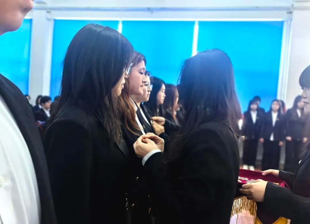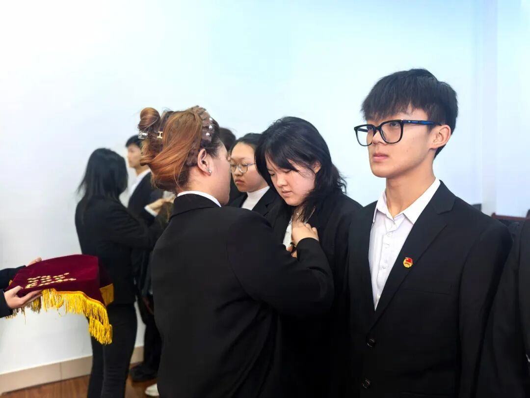 大会进行第三项,为新团员颁发并佩戴团徽。当金色的团徽在胸前熠熠生辉,标志着他们正式融入了这个追求进步、充满活力的集体,也标志着他们将个人的成长与祖国的未来、民族的命运紧密相连,时刻准备着为共产主义事业贡献青春力量!