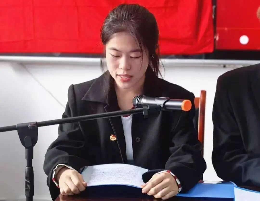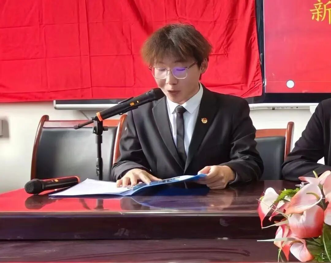 大会进行第七项,新团员代表孙琦琦发言,她首先表达了加入共青团组织的无上光荣和激动心情,接着她深刻阐述了对于团员身份的认识,指出胸前的团徽既是荣誉的象征,更是沉甸甸的责任,意味着必须以身作则,发挥先锋模范作用。最后,她代表全体新团员郑重承诺:未来必将恪守团章,锐意进取,努力将青春奋斗融入党和人民的事业之中。