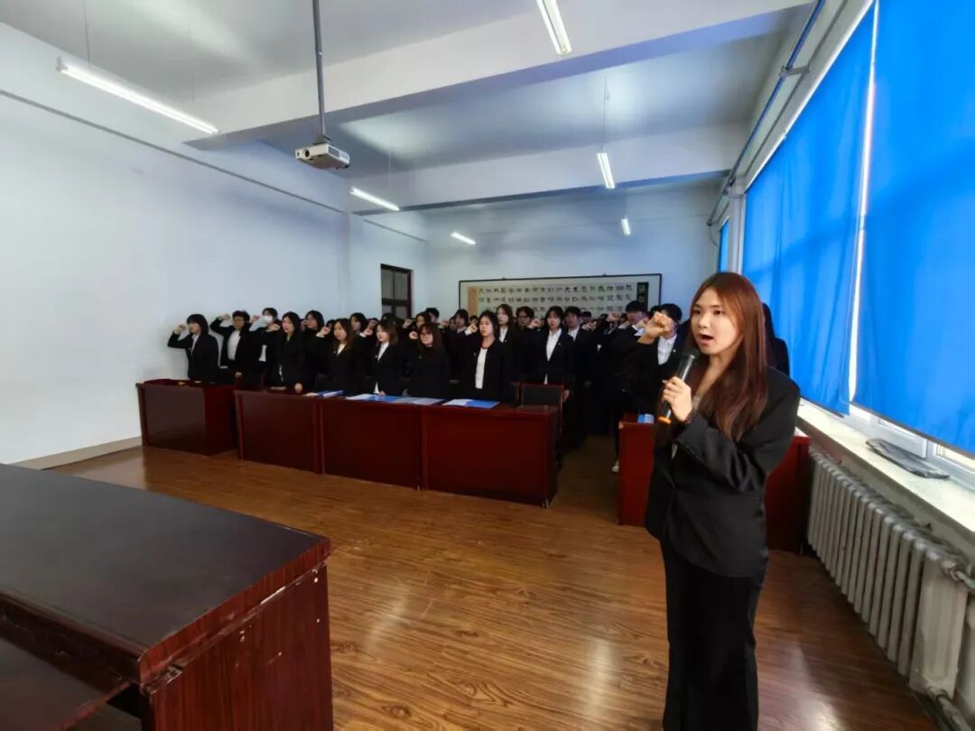 团委学生兼职副书记曹妍妍、苏鑫蕊、计美佳,老团员代表及全体新团员参加本次入团仪式。