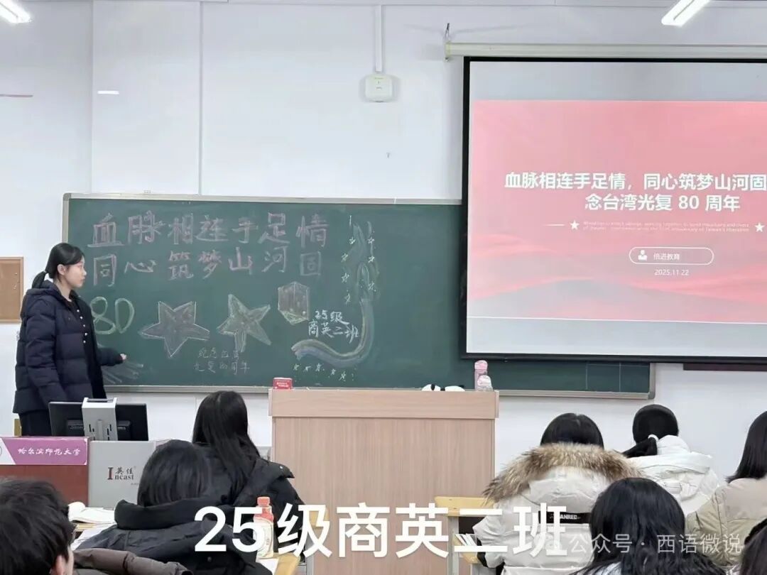 各支部充分发挥专业特色,围绕台湾光复历程开展多语种学习研讨,如用英语翻译爱国志士名言。通过“共绘主题板报”等形式,深化团员青年对历史的认识。