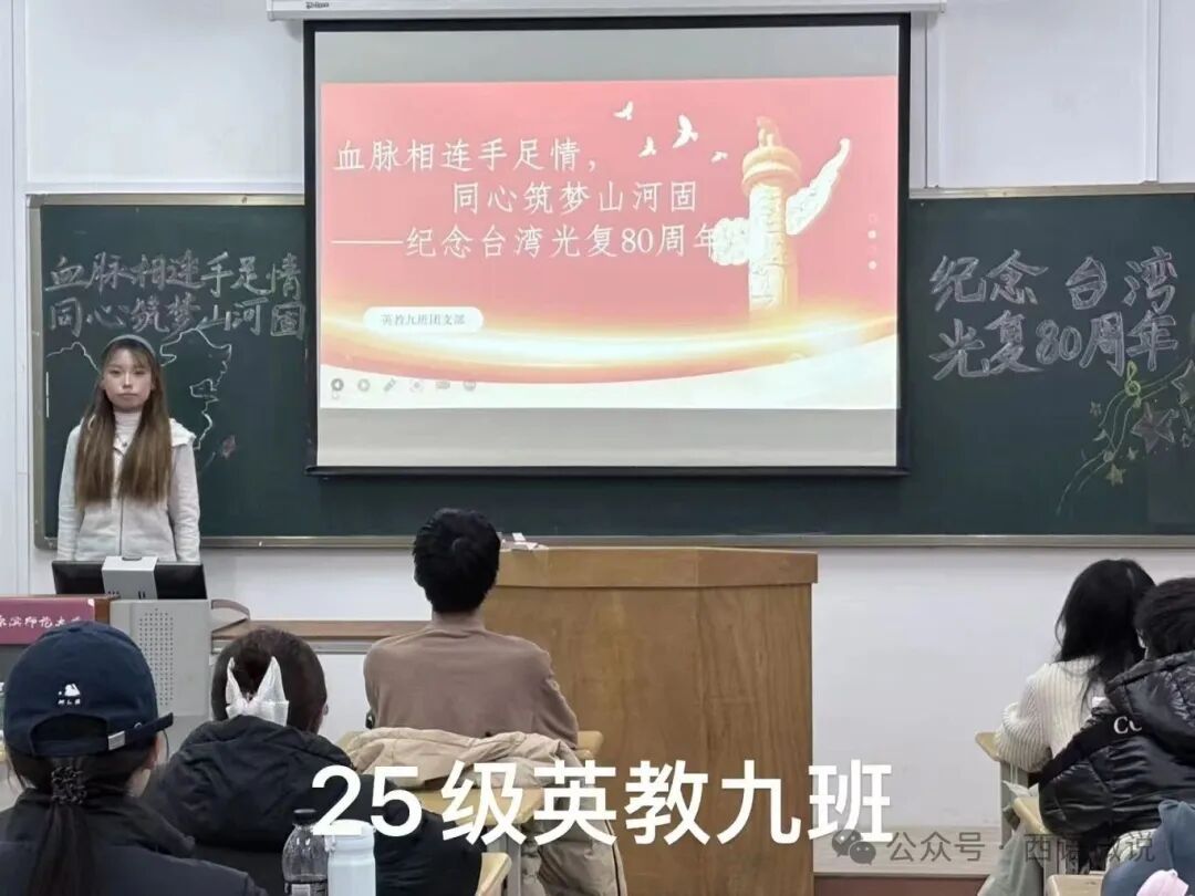 各团支部组织团员观看《国土重光——纪念台湾光复80周年》《台湾·1945》等史料短片。观影过程中,同学们全神贯注,深刻体会两岸同胞血脉相连的深厚情谊。