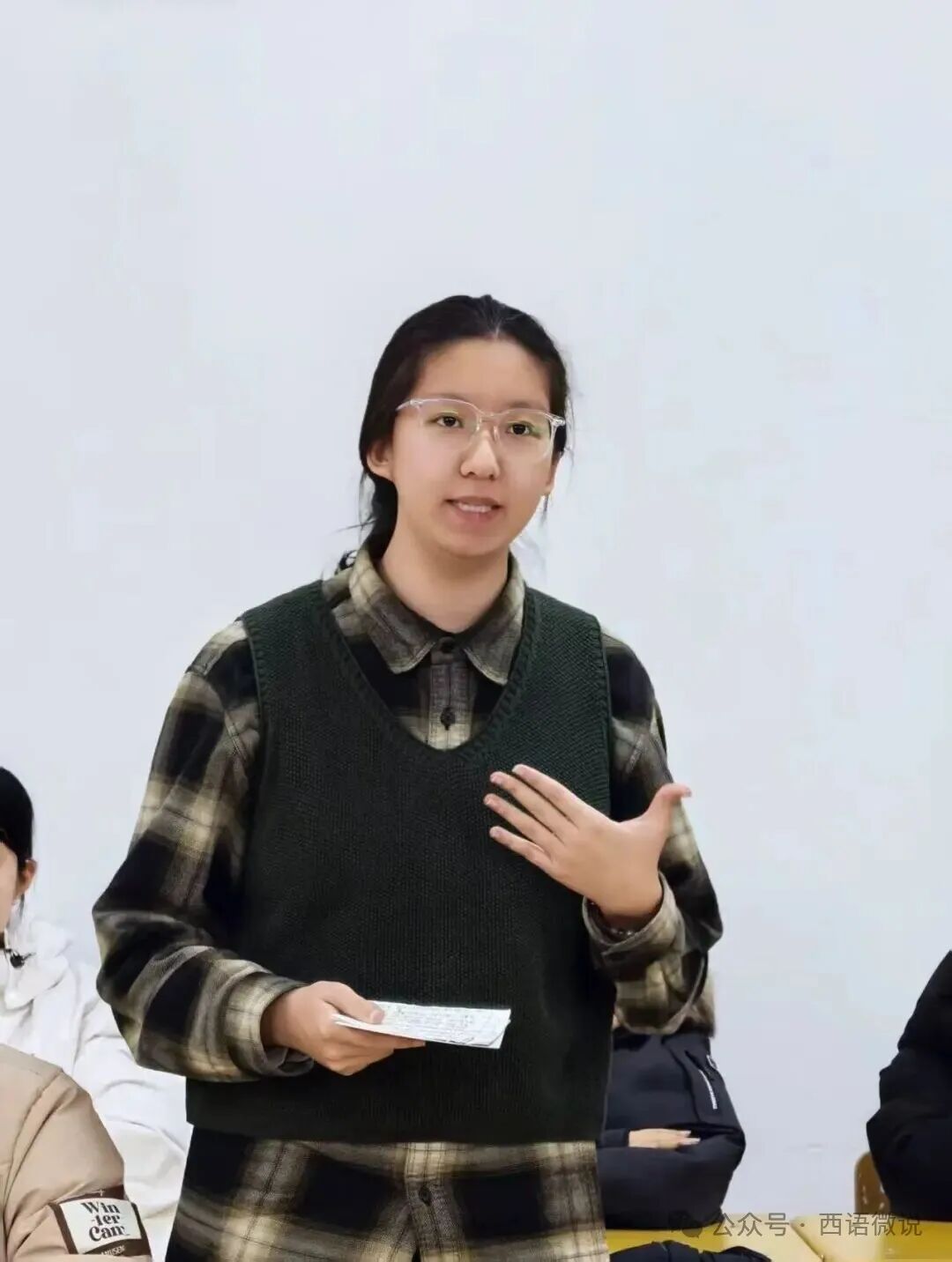 在精神传达环节,邢思琪领学了习近平总书记给全国特岗教师的回信精神,并结合李强总理对教育工作的指导建议,指出新时代教师应具备高水平专业素养、“双师型”能力、宽广的国际视野,以适应教育现代化与全球化发展的需要。