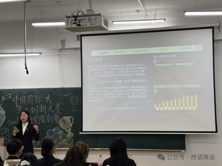 于12月3日19:00在西语楼451教室举办院内初赛。经学院创新创业协会的专业筛选与评审,共八组优秀项目团队脱颖而出,进入本次初赛并参与现场答辩环节。
