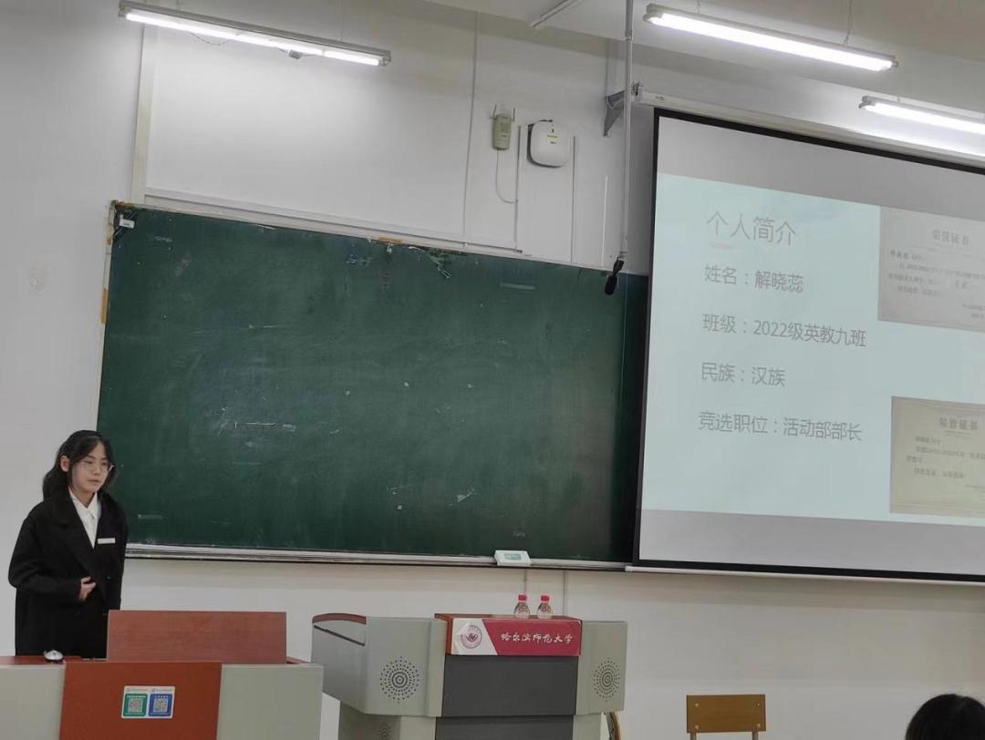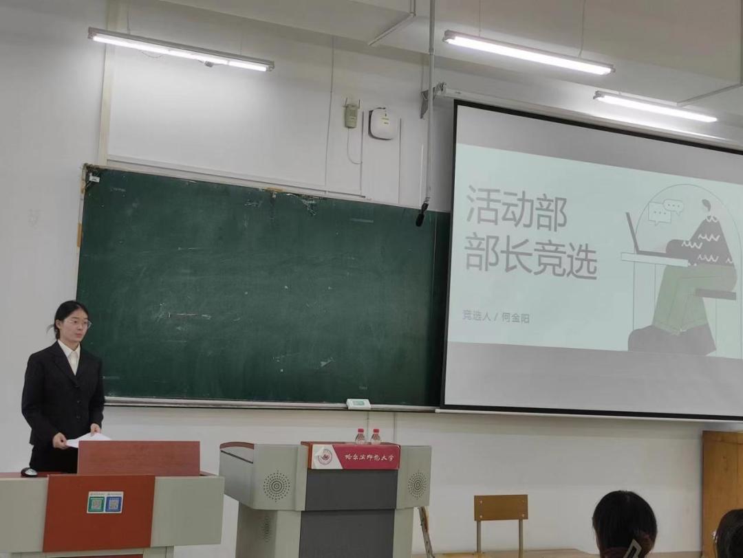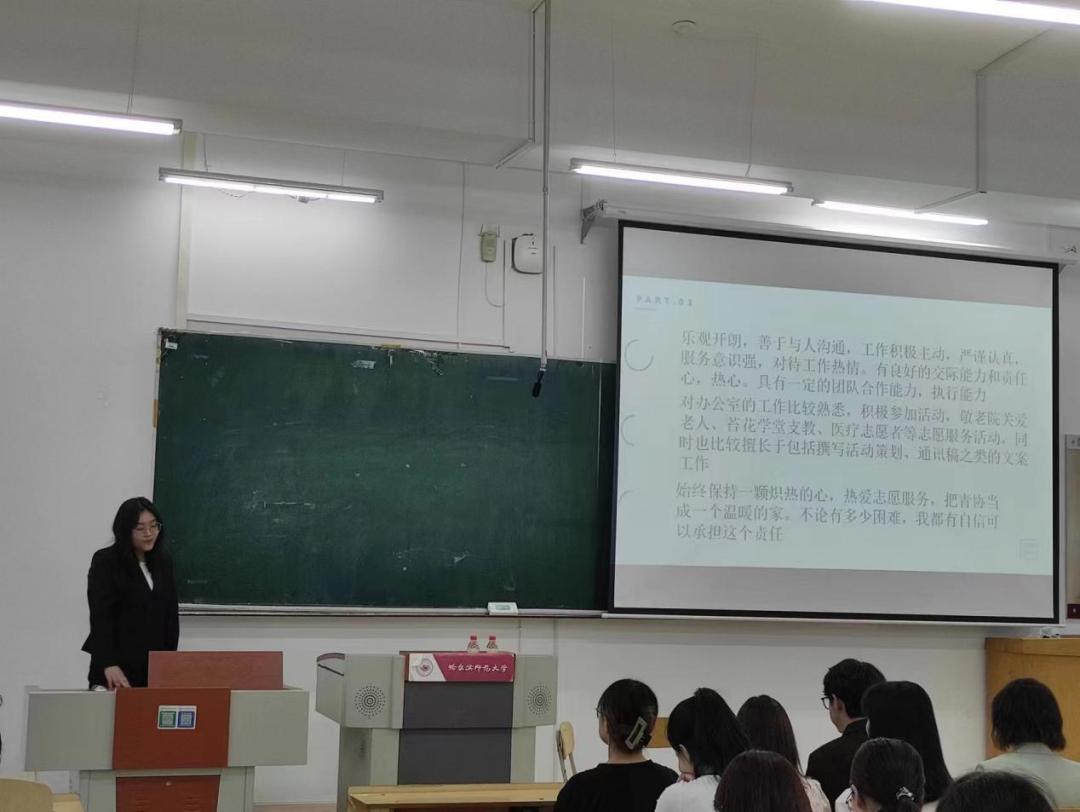 会议伊始,青协文体部部长赵鑫童宣布竞选规则。随后,竞选主席团和各部门部长的候选人按照抽签顺序进行3分钟的个人展示,从个人简历、工作经历、竞选优势、未来期许等方面向大家展现自己的工作水平和工作能力。