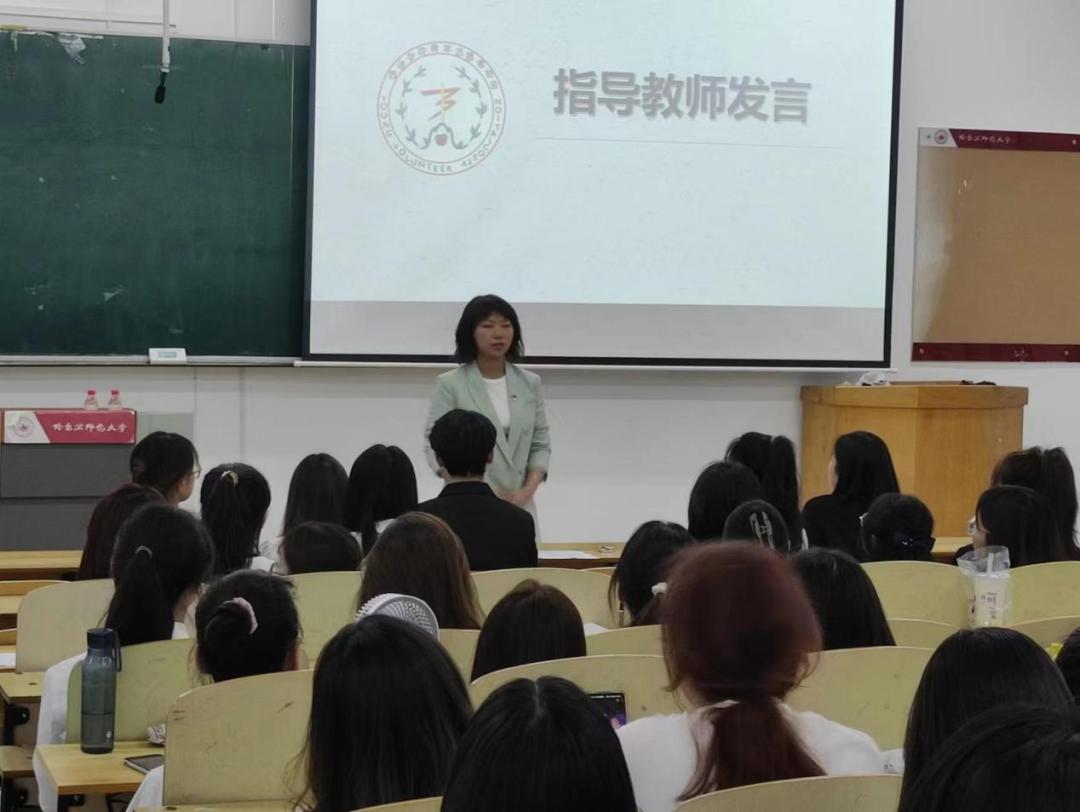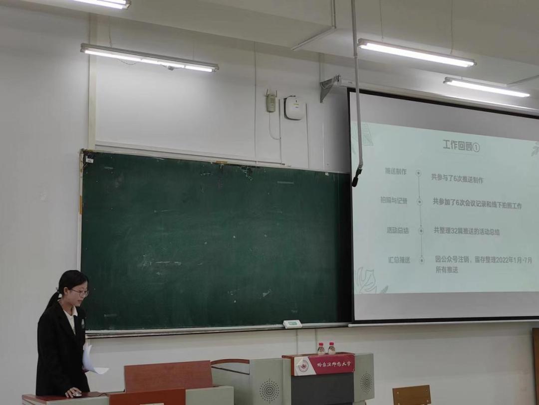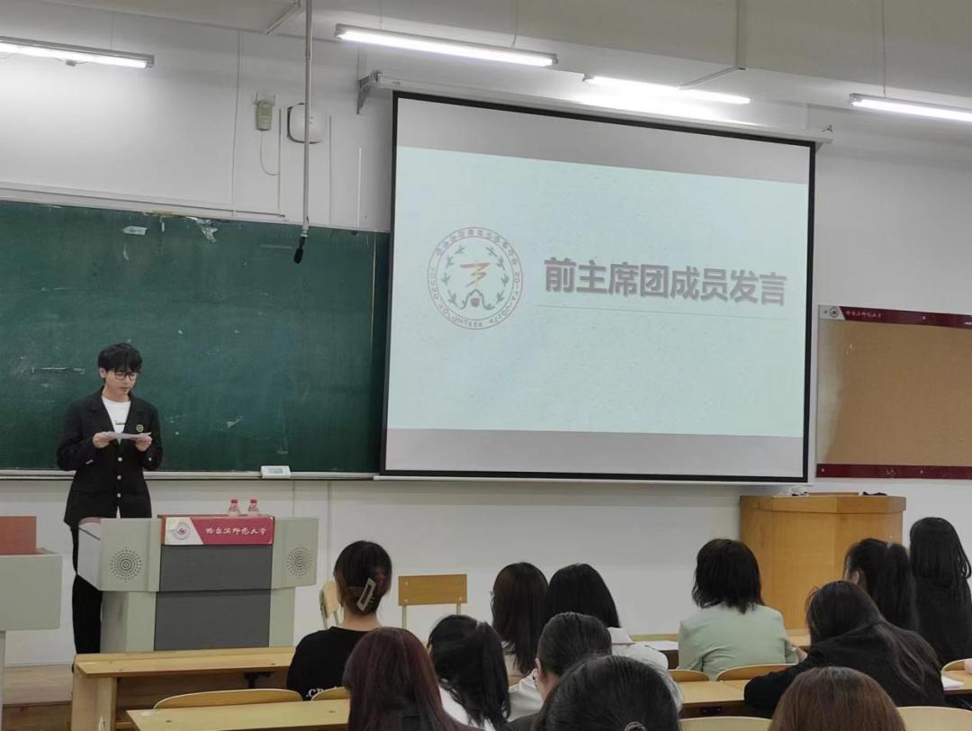 随后,西语学院青年志愿者协会主席安俊杰进⾏⼯作总结。安俊杰主席根据自身工作经验向青协成员们提出一些建议,希望青协成员能够不忘初心、守正创新、做事诚恳、为人谦逊、踏踏实实。