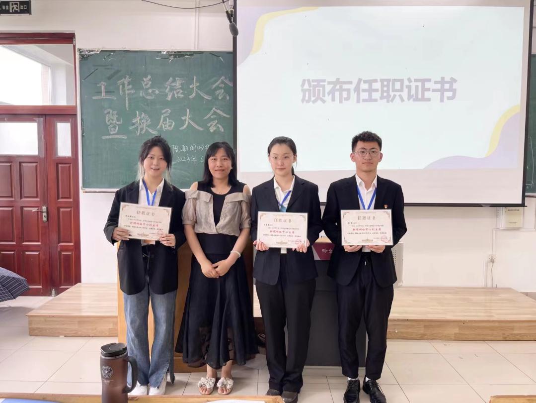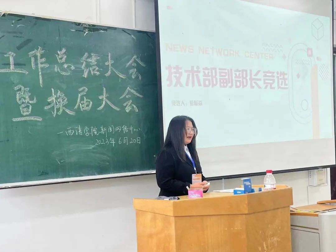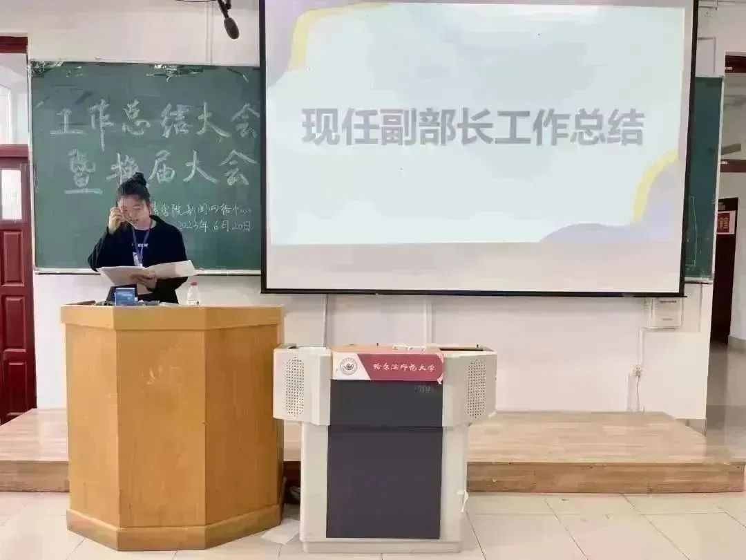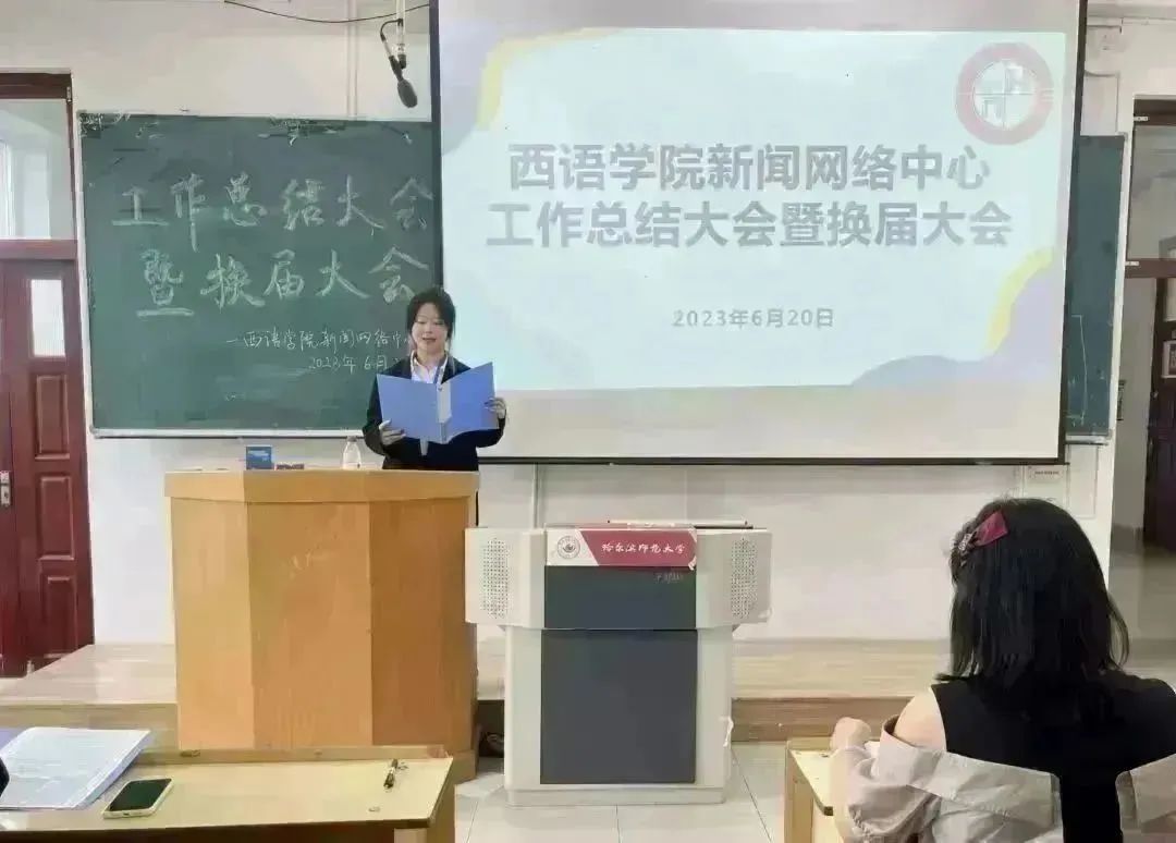 新闻网络中心于2023年6月20日13:00时在西语楼403举行工作总结大会暨换届大会。指导老师徐伟伟,主席团成员,全体原部长、副部长及竞选成员参加本次会议,新闻网络中心副主席许琳尉主持此次会议。