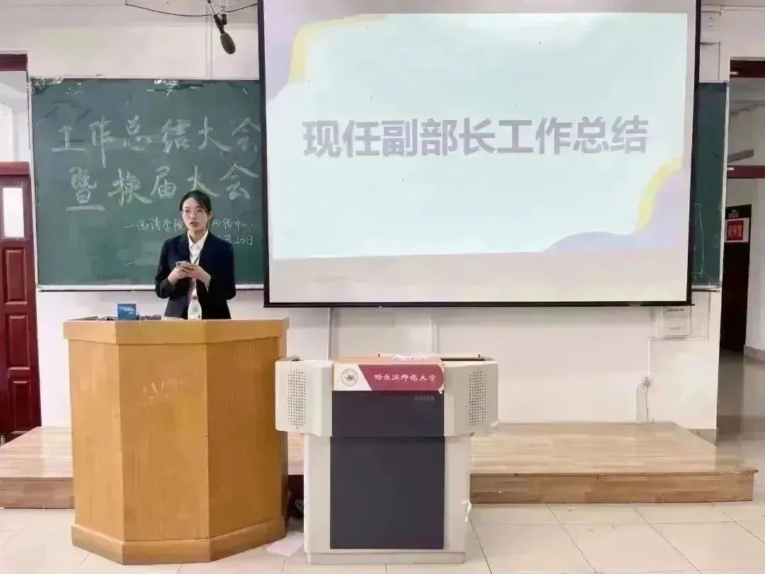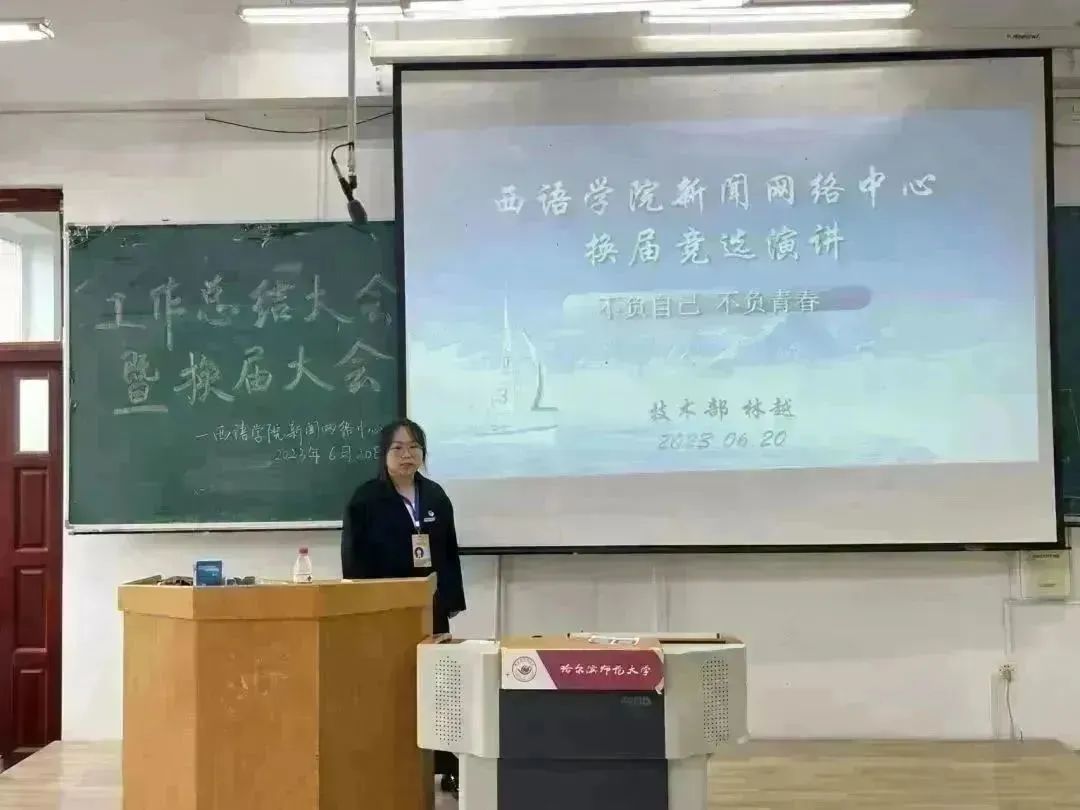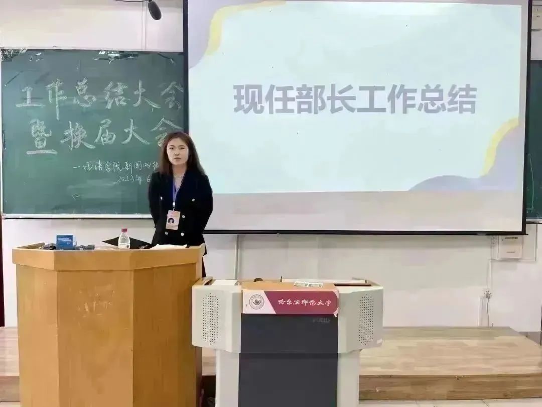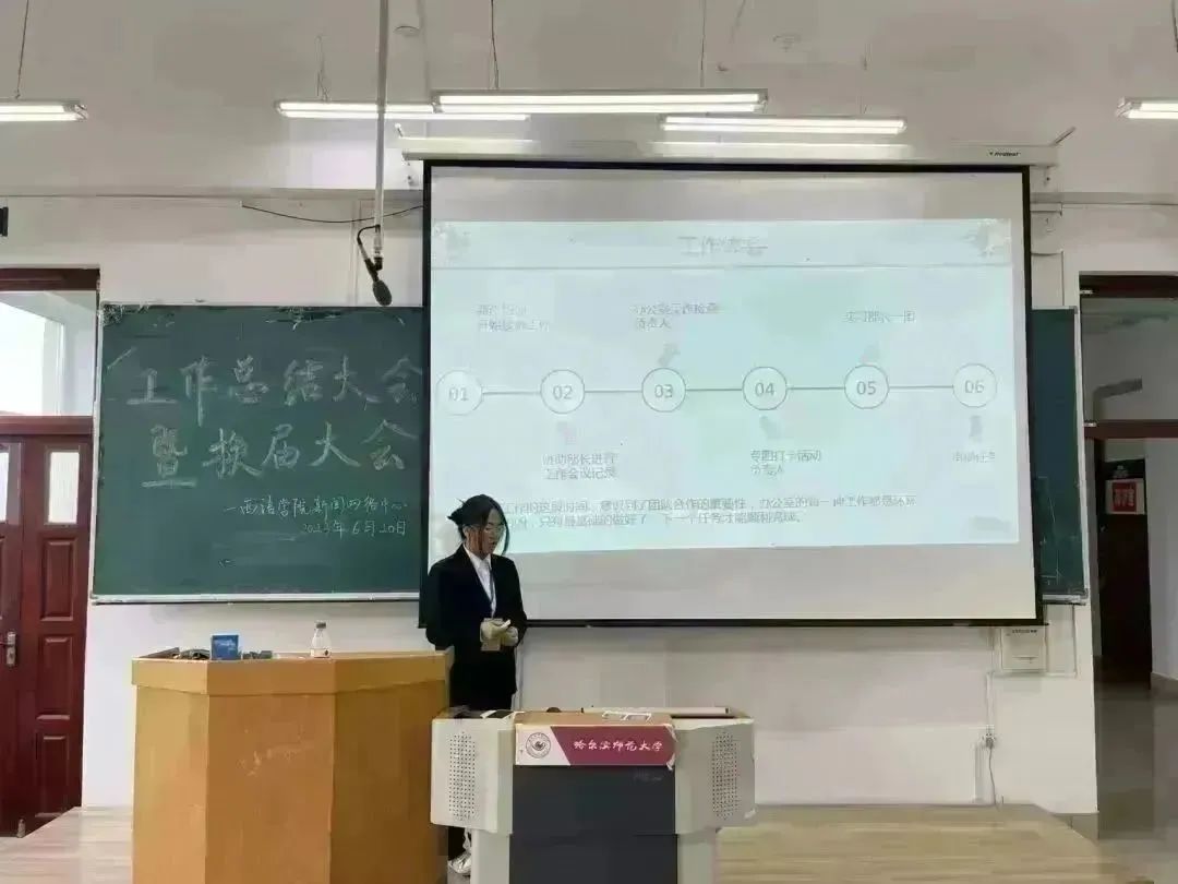 新闻网络中心于2023年6月20日13:00时在西语楼403举行工作总结大会暨换届大会。指导老师徐伟伟,主席团成员,全体原部长、副部长及竞选成员参加本次会议,新闻网络中心副主席许琳尉主持此次会议。