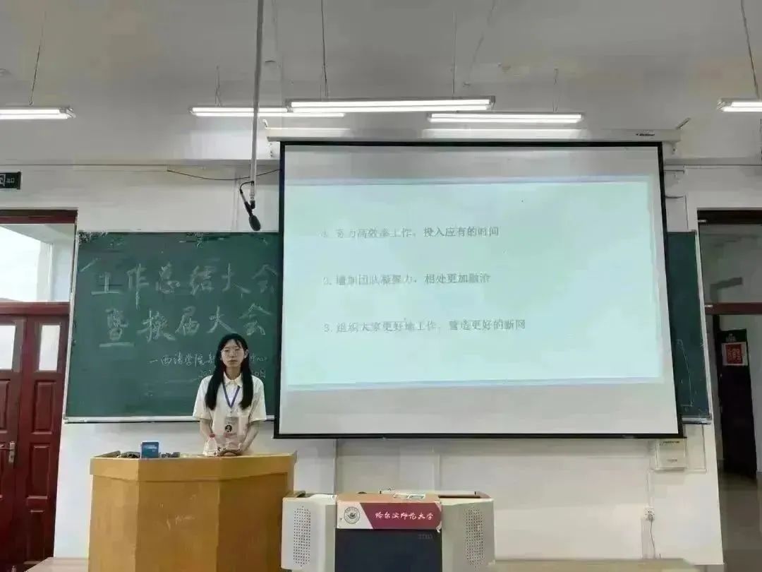 会议伊始,现任主席、副主席、部长以及副部长对组织一年的工作进行了回顾与总结,对接下来的新学年寄予期望,希望新一批新生力量能够做到初心如磐,行远自迩,笃行不怠,对待工作也要拿出态度,做出高度,带领成员走向新的高度,为新网的发展添砖加瓦!