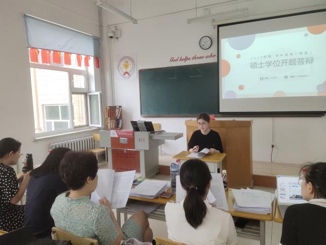 郭颖副教授、马阿婷教授、于淼副教授、刘洋副教授。2022级学科教学(英语)专业共16名研究生参与了此次开题答辩。经过答辩委员会评议和无记名投票,认为16名研究生的论文选题基本符合专业学位论文的要求,有自己的见解和论文思路,准许通过硕士学位论文开题答辩。