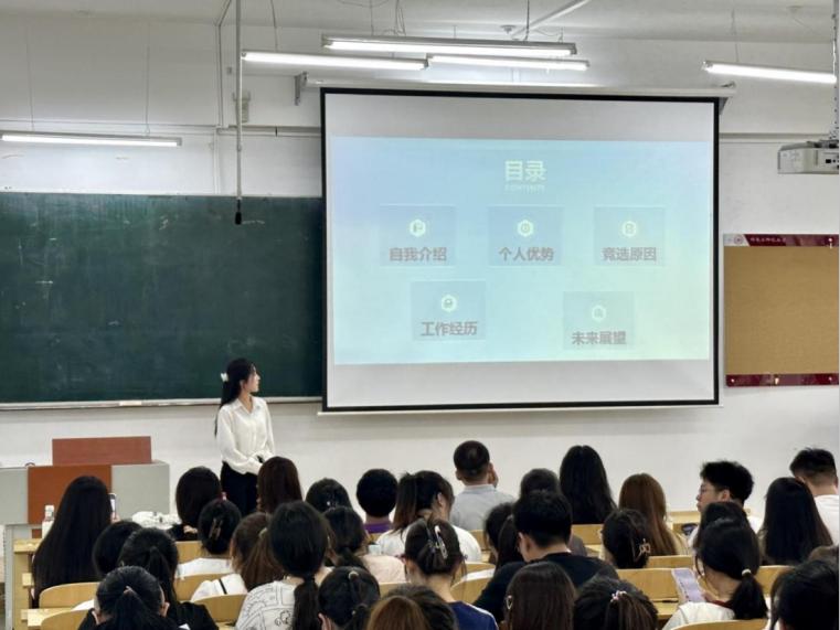 参加竞职的同学,通过PPT、演讲稿等形式,围绕过去一学年的工作经历,总结了自己的收获,并对自己所竞选的职位,结合自身不足、优势,表明了自己参加学生干部竞选的态度,对自己如果能有机会继续从事学生工作及所在职位相关工作的开展,提出了新的设想和计划。在情景分析环节中,各位同学根据题目多方面思考,认真考虑解决方案,充分展现了自身的能力风采。