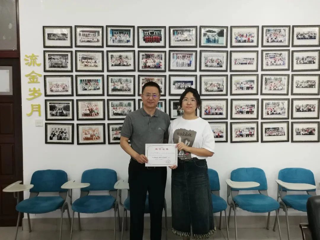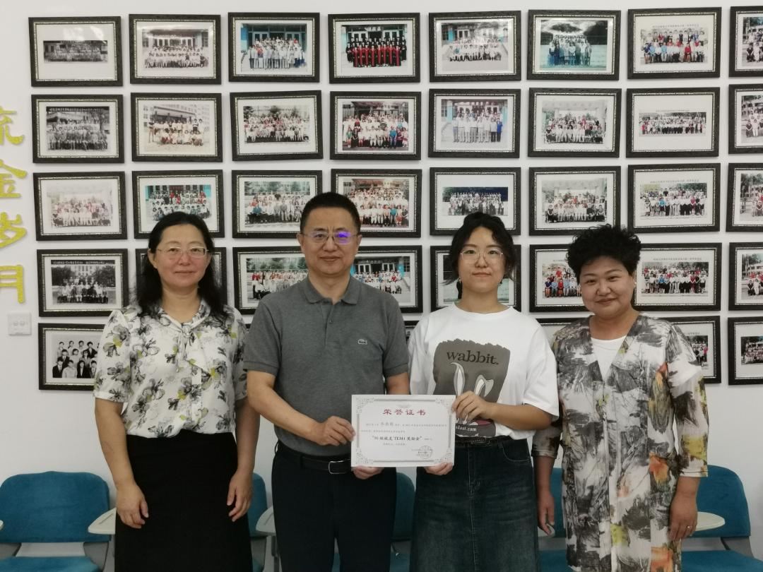 院长顾世民颁奖。顾世民、毛海燕、张春玲与获奖者合影留念。