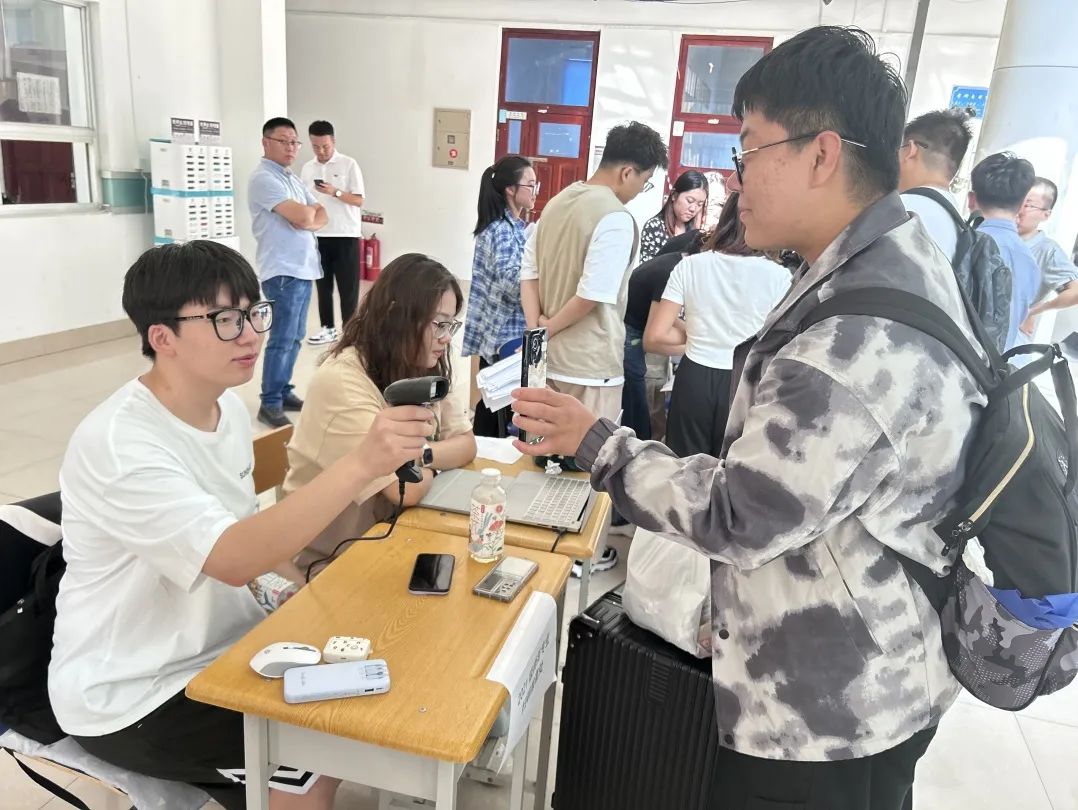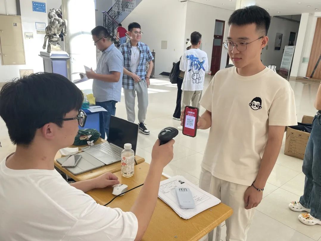 学生秋季返校。首先,在进校后由工作人员引导同学们寻找各自学院所对应的位置,扫描入校码,进行入校登记。