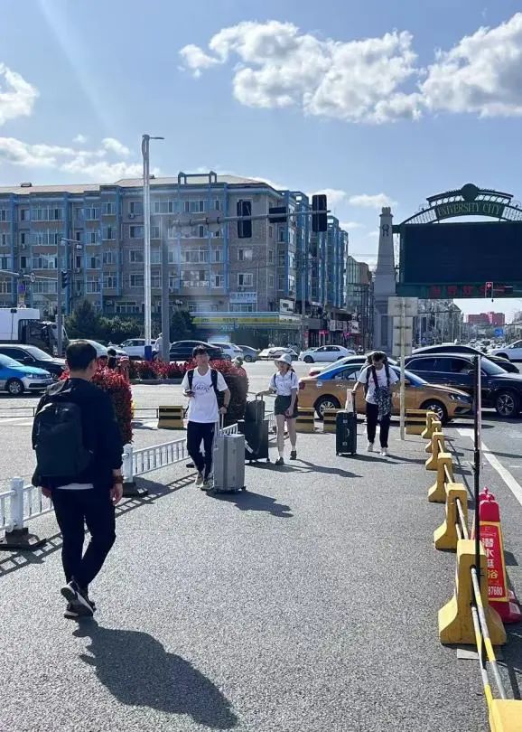 随后师大暖心“小蓝车”贴心地将学生的行李有序送到公寓门口。需要注意的是,同学们入校后需进行入校码审核,待审核后方可自由活动。