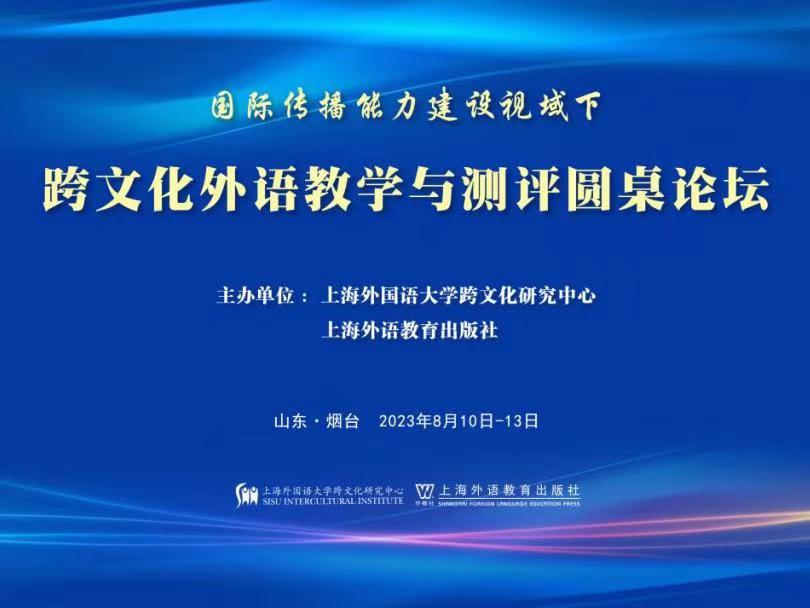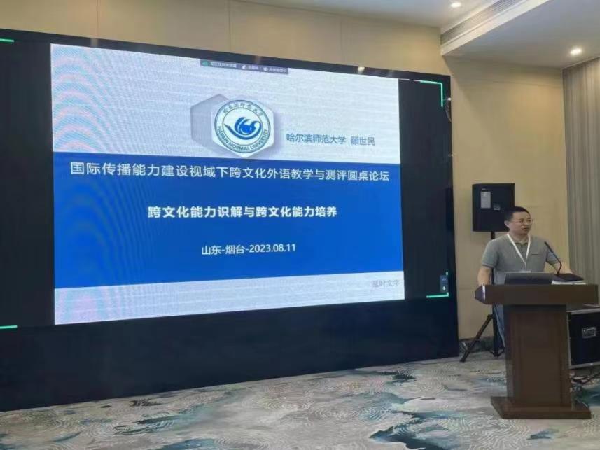 为了回应新时代国家战略需求,服务国际传播能力建设,上海外语教育出版社联合上海外国语大学跨文化研究中心,于2023年8月10日-13日在山东省烟台市举办“国际传播能力建设视域下跨文化外语教学与测评圆桌论坛”。来自全国约50所院校的70多位院系领导、专家和教师参加本次论坛,顾世民教授受特邀就“跨文化能力识解与跨文化能力培养”作主旨发言。