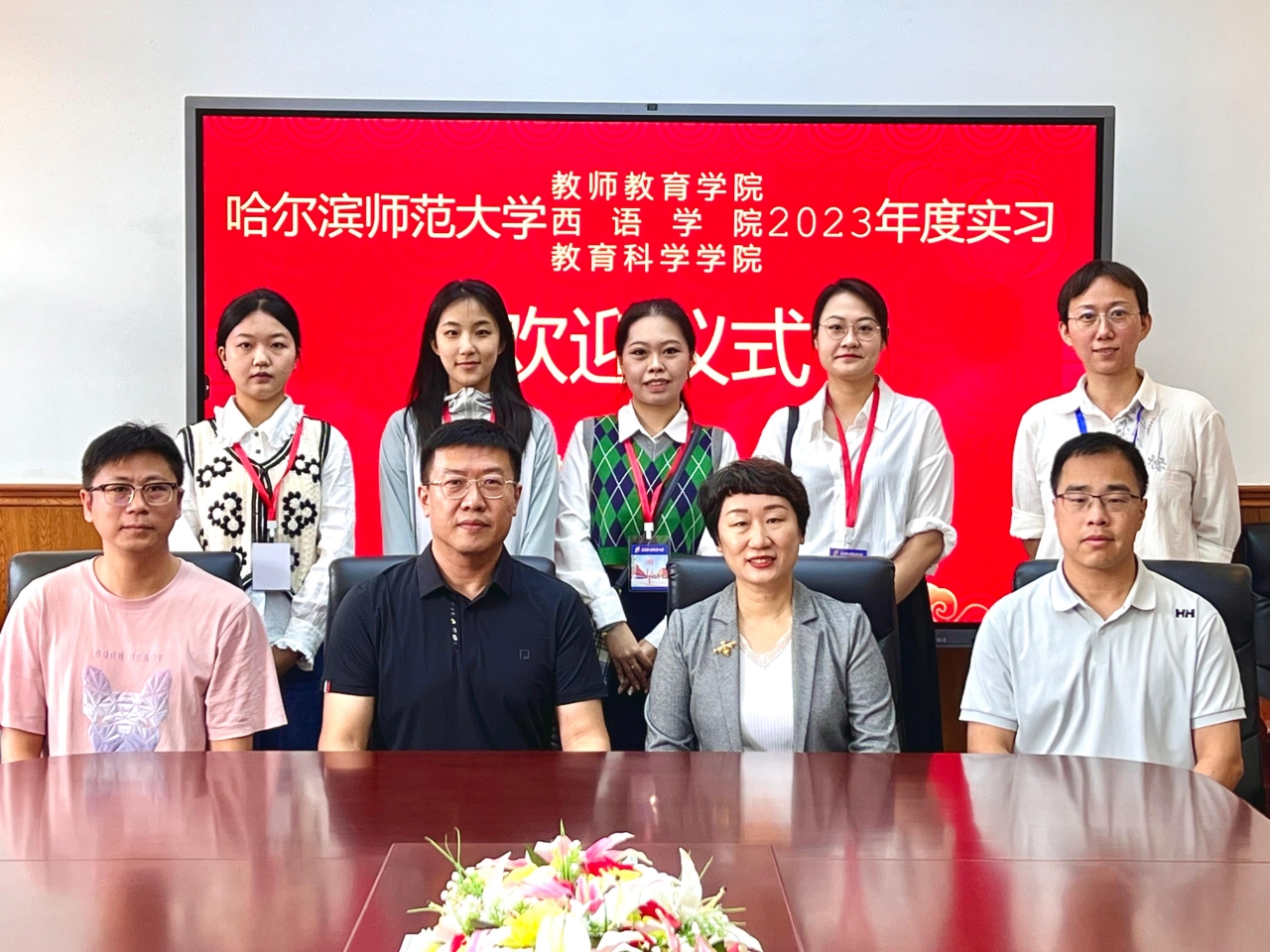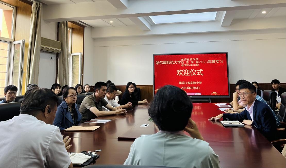 黑龙江省实验中学的校领导和实习指导老师代表在日知楼会议室举行了欢迎仪式,对iqqtv