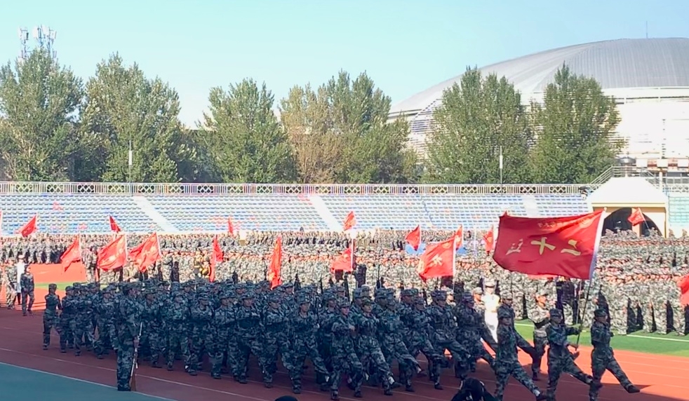 2023年新生军训汇报表演暨总结表彰大会如期举行。2023级本科新生以威武的军姿、崭新的风貌、昂扬进取的精神意志展现军训成果,用新时代青年学生的自信风采向党和国家献礼。