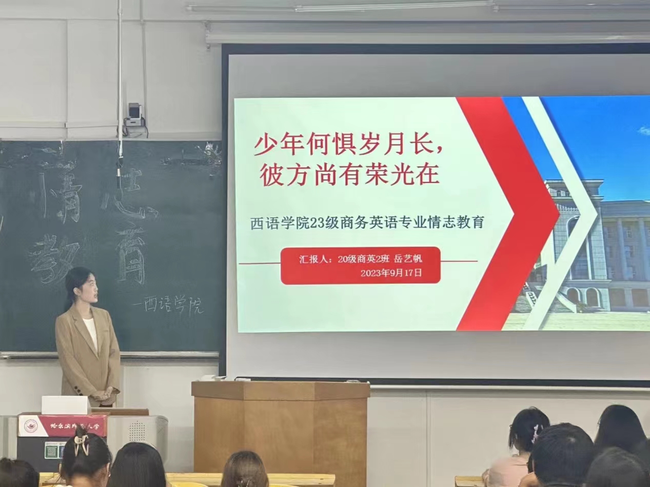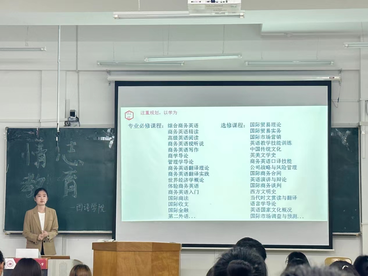商务英语专业在西语楼402教室举办2023级专业情志教育讲座,本次讲座由2020级商务英语专业学生岳艺帆主讲,2023级商务英语专业全体学生参加。