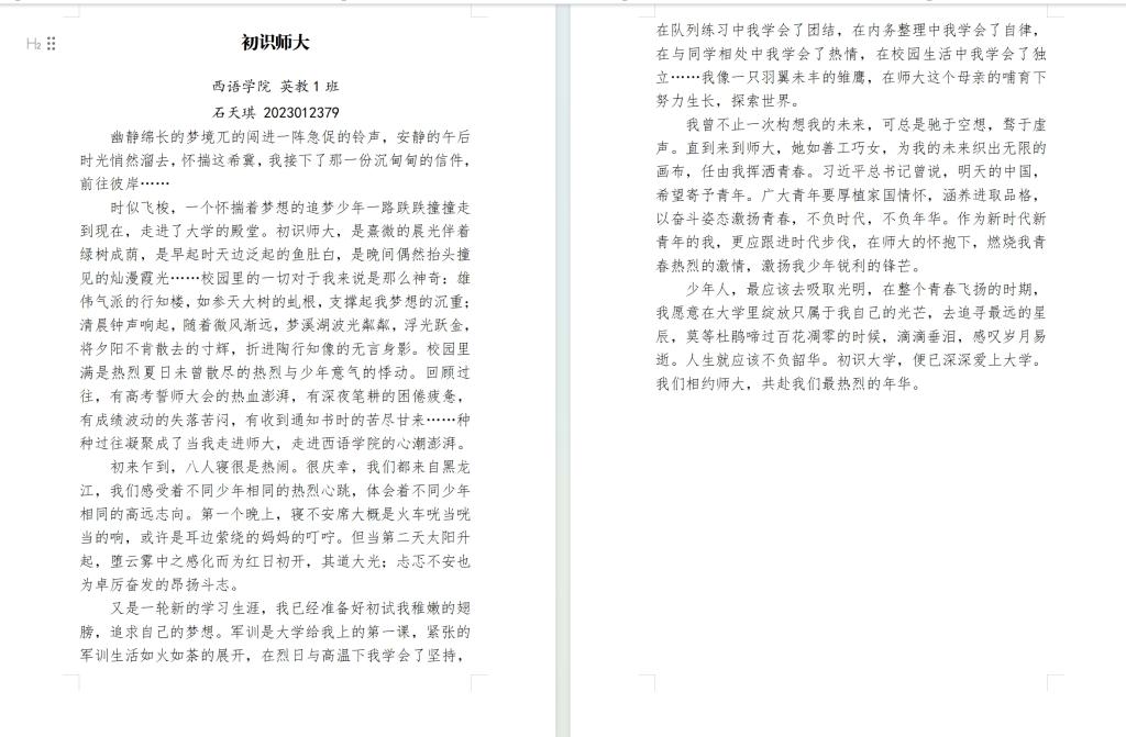 英语(师范类)一班石天琪