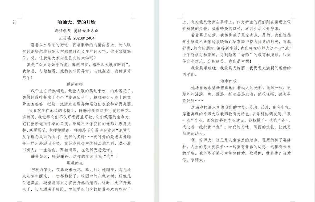 新生初来校园,对大学中的一切都充满希望与好奇,为此学院特举办以“初识大学”为主题的征文活动。让新生以初来者的眼光和视角,表达自己对大学的认知和感受,激发和培养新生爱校爱师的情感。
