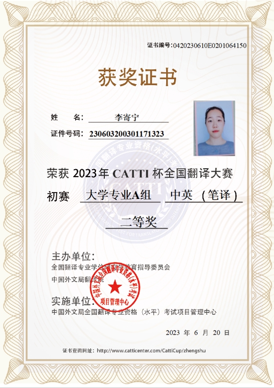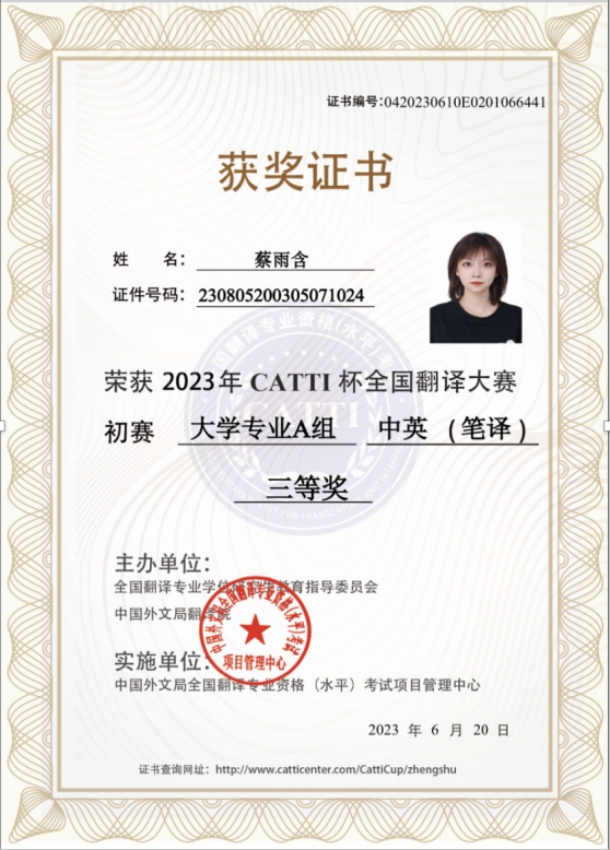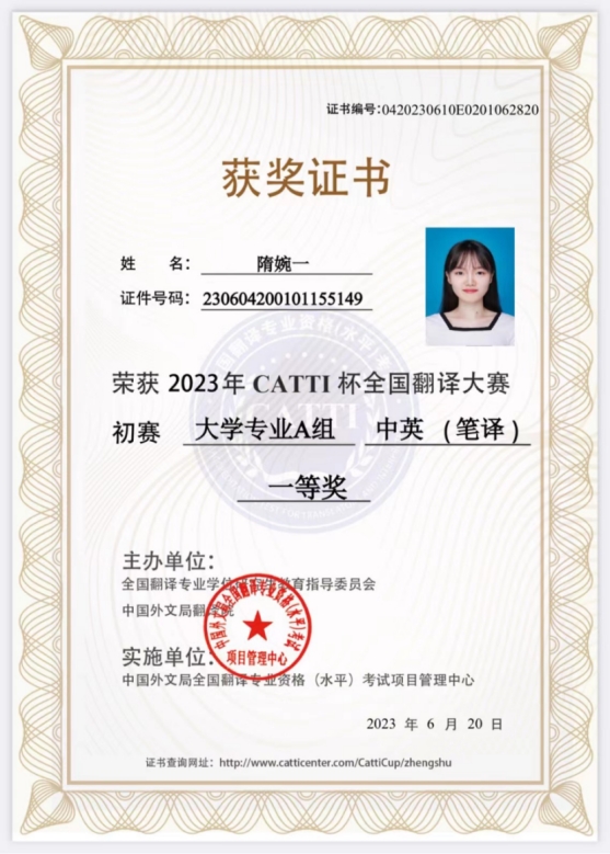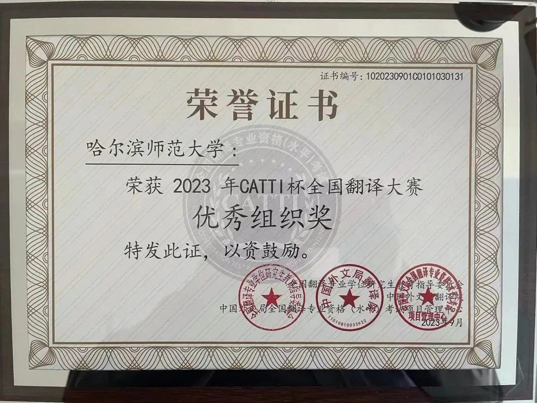 在刚刚结束的2023年CATTI杯全国翻译大赛中,我院获得大赛优秀组织奖。CATTI杯全国翻译大赛,创办于2022年,由全国翻译专业学位研究生教育指导委员会和中国外文局翻译院联合主办,比赛每年举行一届,由中国外文局CATTI项目管理中心负责实施与管理。